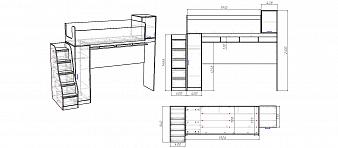 Кровать-чердак с рабочей зоной Мираж К5 BMS