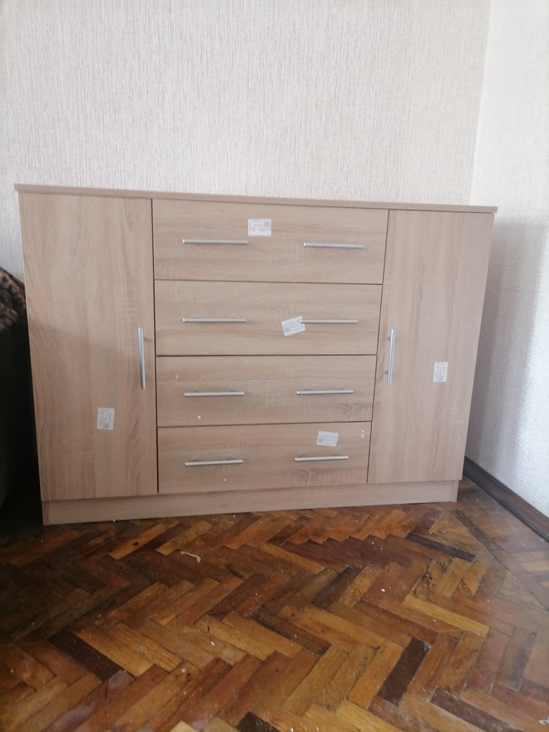 Комод понравился. Собирал сам. Очень приятно, когда крепежа хватает, все технологические отверстия на своих местах. ( кроме пары лишних отверстий на одном из фасадов, но они внутри были и я их заклеил) Может кому то будет полезно - так выглядит комод размером 130х38х87см , венге цава и ясень шимо светлый.