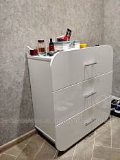 Комод заказывала в коридор, искала именно глянцевый белый. Сложно было найти подходящей глубины (до 40 см) После долгих поисков наткнулась на этот сайт. Очень понравилось, что размер практически любой могут сделать. Доставка достаточно быстрая около 10 дней. Комодом довольна, качество ДСП нормальное(не рыхлый),ящики открываются хорошо, смотрится очень интересно за счет закругленных фасадов. Переживала, что на глянце будут видны отпечатки, но такой проблемы не возникло. За три месяца вообще не заляпался.