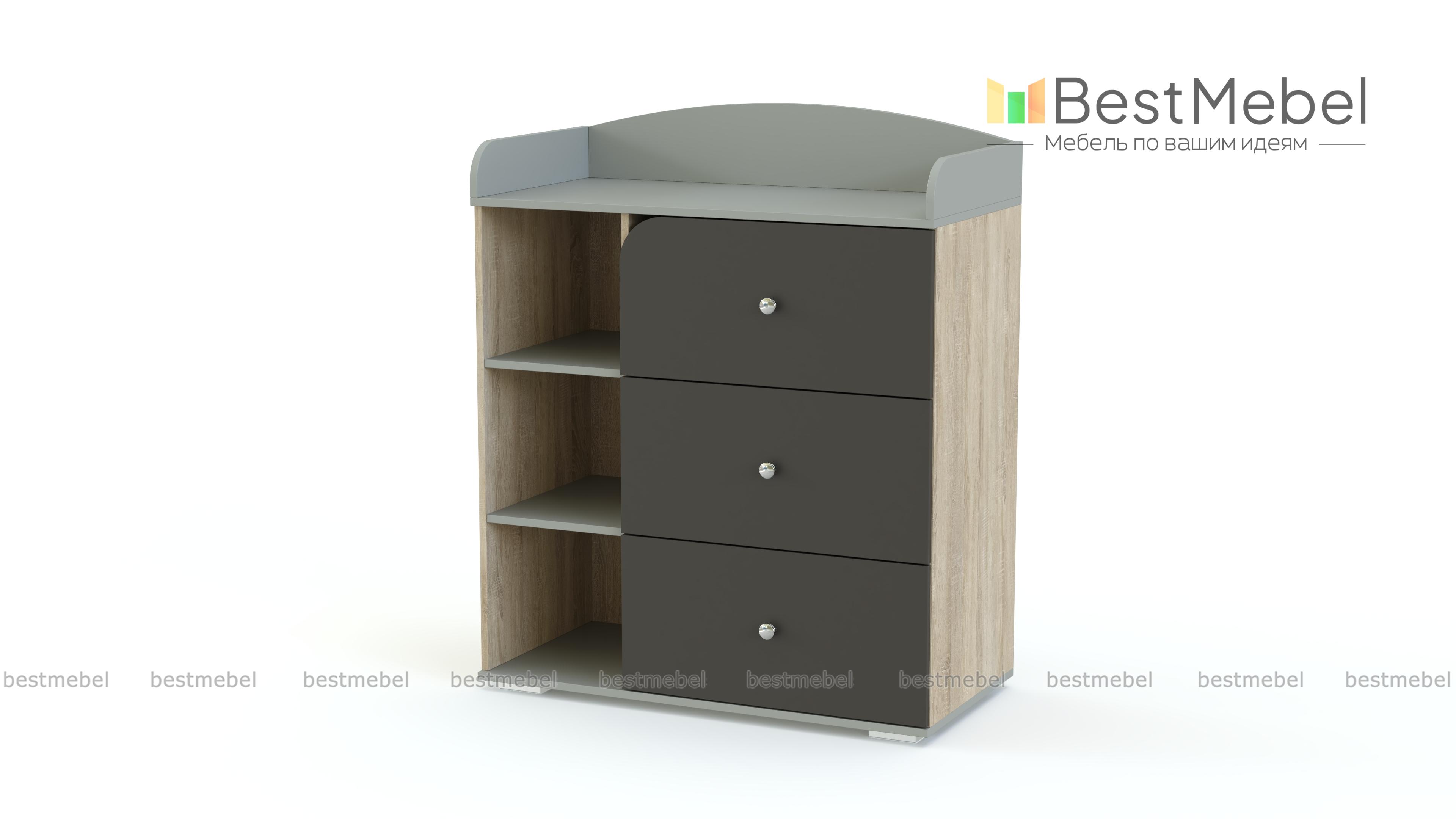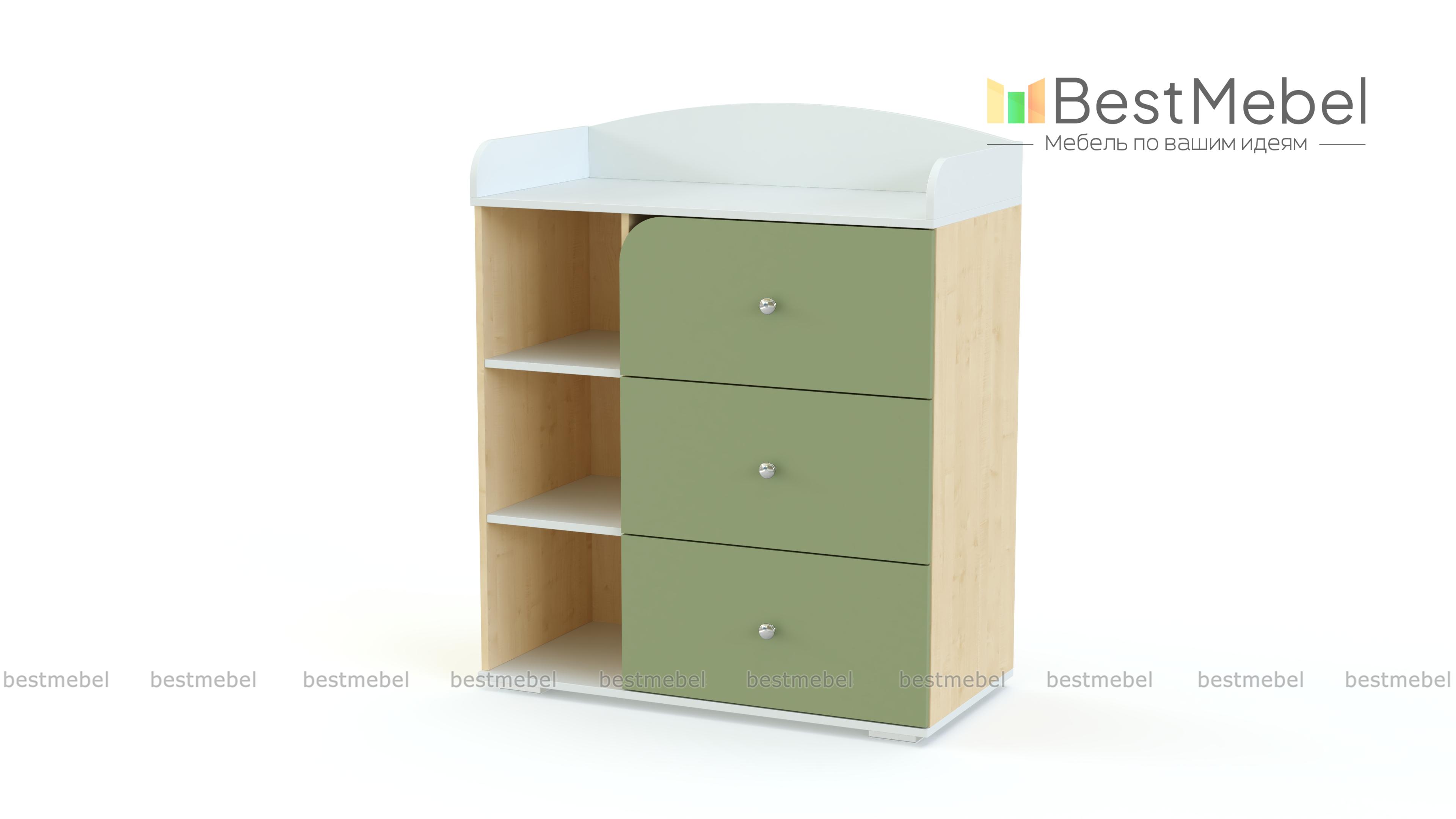 Пеленальный комод Айлин Нео 2 BMS имеет оптимальный набор функций при доступной цене. Небольшой яркий комод помимо трех глубоких выдвижных ящиков оборудован тремя открытыми секциями для хранения средств гигиены, игрушек и прочих необходимых в быстром доступе вещей. Встроенный пеленальный столик закрыт по бокам и вдоль задней стенки скругленными бортиками, которые защитят малыша от случайных травм, Купить пеленальный комод Айлин Нео 2 BMS с выбором фурнитуры и цвета по каталогу приглашаем к нам в интернет-магазин.
