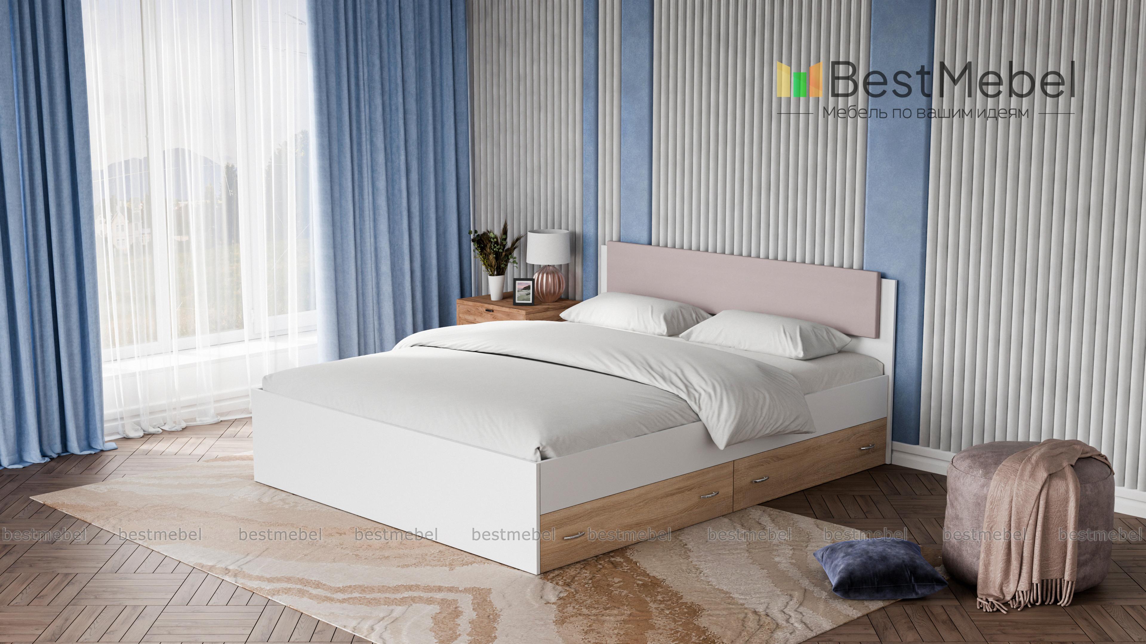 Кровать двуспальная Виктория Эко BMS станет частью элегантного современного спального интерьера. Выполненная в актуальных монохромных оттенках, кровать отличается строгой геометрией форм. Модель оборудована просторным и высоким спальным местом без спинки в изножье, спинка изголовья дополнена накладкой в мягкой обивке из экокожи в универсальном белом оттенке. Для удобного хранения постельных принадлежностей предусмотрены просторные ящики в основании. Купить кровать двуспальную Виктория Эко BMS приглашаем в наш интернет-магазин.