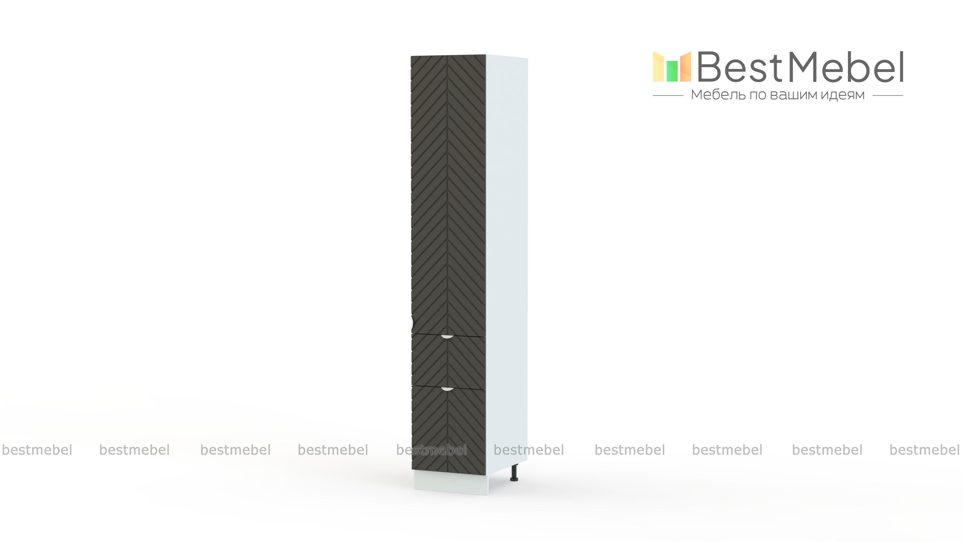 Шкаф-пенал с дверцей и 2-мя ящиками Анаис BMS прекрасно смотрится отдельно и с другими предметами модульной кухни. Рельефная отделка фасада сочетается с базовым светлым оттенком и стильной фурнитурой в тон. Удобная система хранения для кухонной утвари и продуктов включает в себя распашное отделение с полками и пару выдвижных ящиков разных размеров. Купить шкаф-пенал с дверцей и 2-мя ящиками Анаис BMS можно на нашем сайте с индивидуальным подбором габаритов, цвета и фурнитуры.