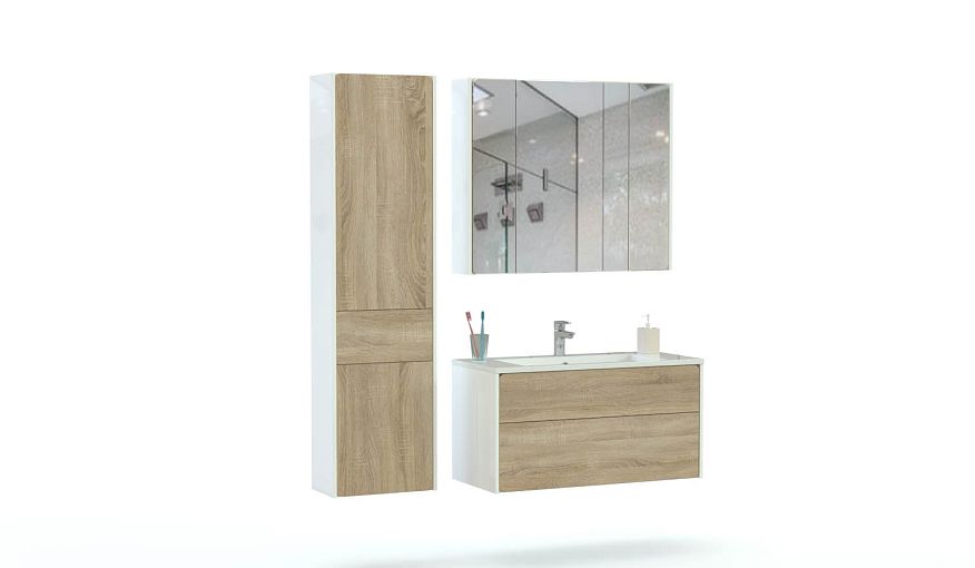 Мебель для ванной Лючия 4 BMS подчеркнет достоинства минималистичных интерьеров. Подвесная композиция включает в себя широкую тумбу под раковину, оборудованную двумя выдвижными ящиками для хранения уходовых средств, комбинированный пенал и зеркальный шкаф. Лаконичные по форме, предметы выполнены в сочетании корпуса белого цвета и древесных фасадов без лицевой фурнитуры, чуть скругленных по краям. Купить мебель для ванной Лючия 4 BMS вы сможете на сайте нашего интернет-магазина.
