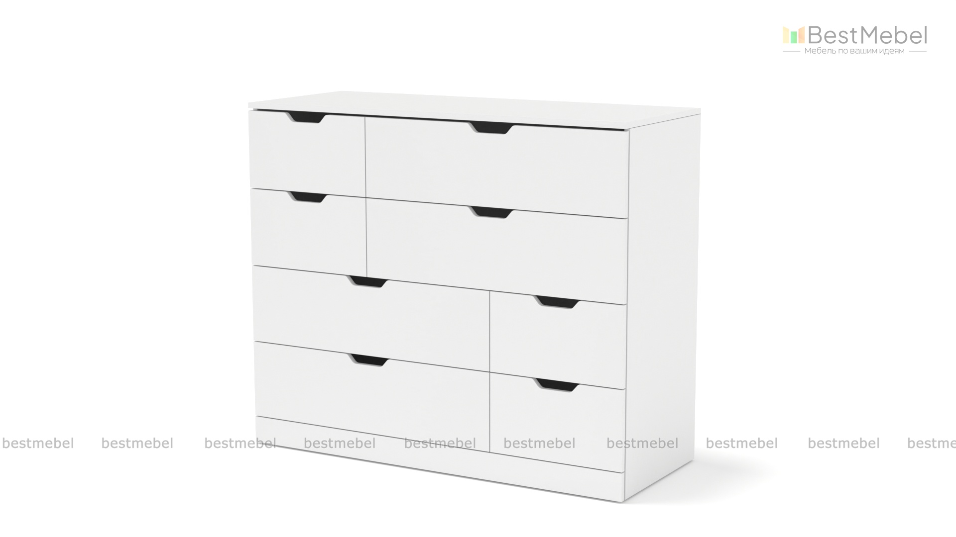 Комод Нордли Nordli 4 с асимметричным расположением ящиков воплощает современные дизайнерские тренды. Выдвижные ящики разных размеров – четыре больших и четыре малых, позволяют разместить как всевозможные мелочи, так и более габаритные вещи. Трапециевидные ручки-вырезы на гладких фасадах необычно выглядят и комфортны в повседневной эксплуатации. Купить комод Нордли Nordli 4 в гостиную, спальню или прихожую вы сможете на сайте нашего интернет-магазина. Выбирайте мебель в стиле IKEA (ИКЕА) от производителя BestMebelShop!