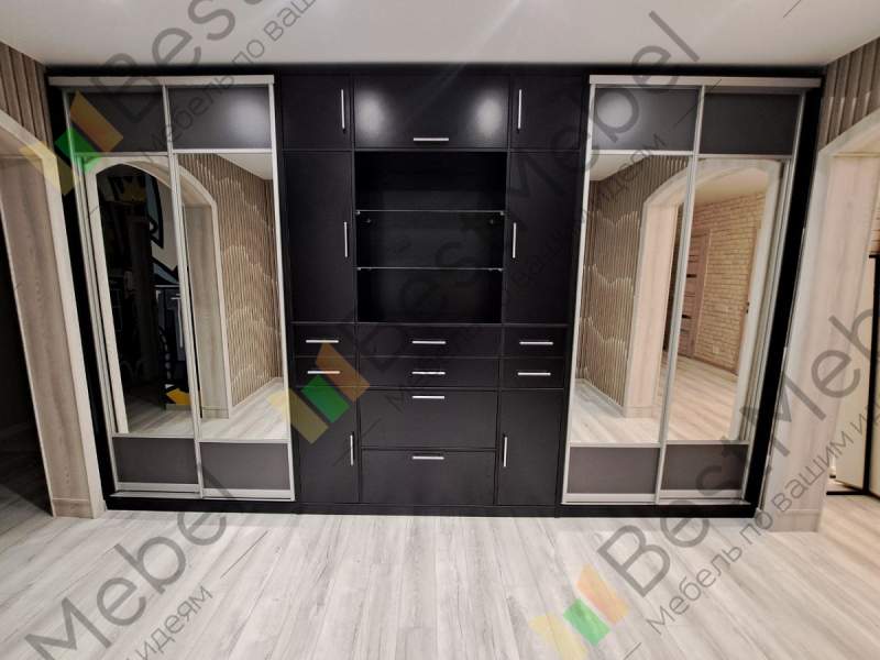 Этот вариант делали под нас, только у нас по одной зеркальной дверки с каждой стороны.Очень вместительно получилось!