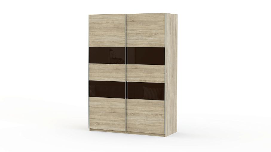 Организовать хранение предметов гардероба и разгрузить помещение от лишней мебели поможет шкаф-купе Brico BMS. Модель выполнена в нейтральных тонах под массив дерева и декорирована по фасадам глянцевыми горизонтальными вставками из стекла. За раздвижными дверями скрывается удобная система хранения, оборудованная тремя отделениями – одним с полками и двумя комбинированными со штангой для плечиков с одеждой. Вместительный шкаф станет стильным дополнением интерьера современной спальни.