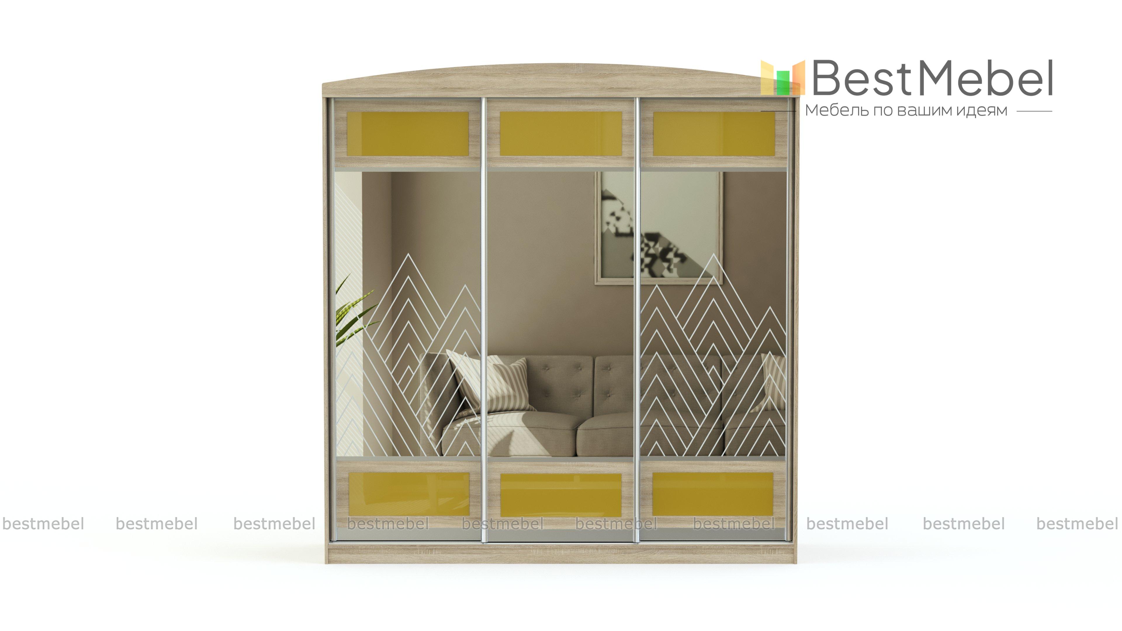 Шкаф-купе Ф-5773 BMS – трехдверная модель с внушительными параметрами, буквально создана для большой семьи. Три вместительных отдела наполнены полками и штангой для вешалок. Они позволяют хранить одежду максимально аккуратно и удобно для Вас. Зеркальные поверхности создают эффект увеличения пространства. Контрастные вставки и пескоструйный рисунок на фасаде создают уникальный дизайн. Изделие можно дополнить подсветкой, чтобы в любое время Вы могли воспользоваться содержимым мебели, не включая общее освещение. Купить шкаф-купе Ф-5773 BMS можно по низкой цене в нашем онлайн-магазине.