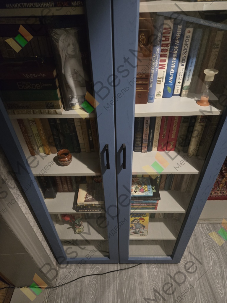 Заказ № 00000597920Такой вот шкаф данной модели, по моим параметрам, получился у меня. Очень довольна, не могу налюбоваться! Оказывается стало целой проблемой найти книжный шкаф по моим размерам и подходящий мне внешне. Но это не оказалось проблемой для вашего магазина ) спасибо