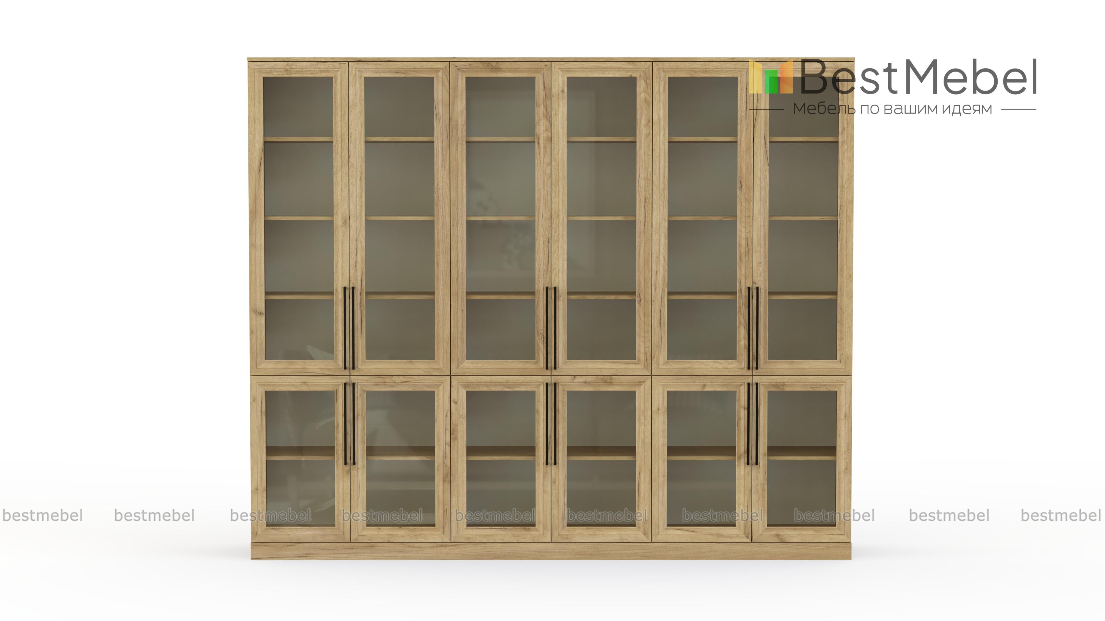 Шкаф книжный Рим 5 BMS с застекленным фасадом будет востребован в домашнем интерьере, офисе или библиотеке. Внутри шести распашных отделений — больших и малых, расположены полки для книг и журналов, документов, предметов коллекции и других памятных вещей. На дверцы классического дизайна с фрезерованными рамками установлены удлиненные стильные ручки. Купить шкаф книжный Рим 5 BMS с выбором размеров, цвета и фурнитуры вы сможете в нашем интернет-магазине.