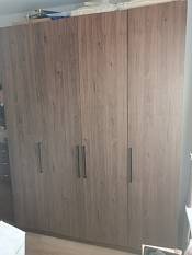 Шкаф распашной Остин Лайт 3 BMS (1400х2600х500). Прекрасный шкаф, хорошее качество исполнения. Прихожую обставила всю из Бестмебель (интересовал именно функционал: чтобы было куда сложить шапки, шарфы(ящики комода), повесить одежду (шкаф), бросить бумаги и сумочку по приходу (консоль)).Был брак на средней дверке на самом видном месте на уровне глаз, попросила заменить-заменили в кротчайшие сроки+доложили петли на две двери(12штук)- изначально их положить забыли, выяснилось в ппоцессе сборки только.Сама заменила штангу (в цвет, с покрытием), "родная" не нравилась-очень уж сильно об нее гремят вешалки.Заказом довольна, рекомендую👍. Огрехи есть, но если не на видном месте-закрываем глазки😉, цена устраивает.