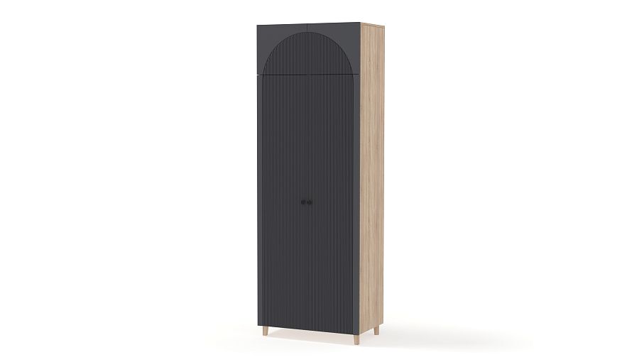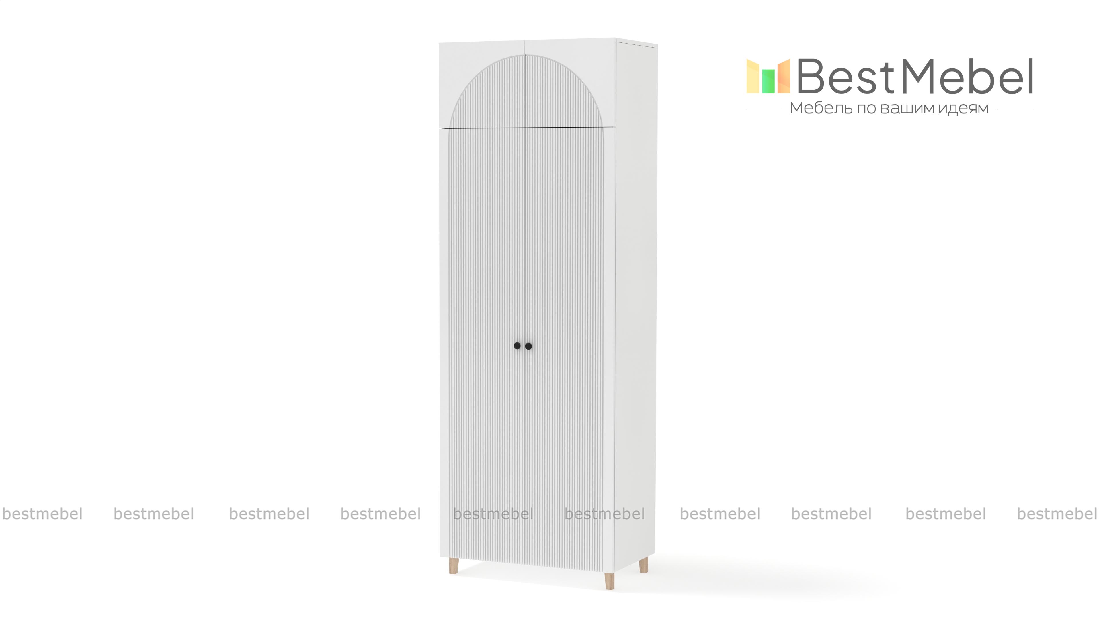 Шкаф распашной Вивьен 5 BMS сэкономит место и сохранит вещи в порядке. Высокая конструкция с деревянными ножками, просторной антресолью и штангой за двумя дверцами выручит вас, когда пространство комнаты ограничено. Стилистическим акцентом в интерьере современной квартиры станет оформленный трендовым рельефом фасад из МДФ. Купить шкаф распашной Вивьен 5 BMS вы сможете в нашем интернет-магазине с индивидуальным подбором размеров, цвета и наполнения.