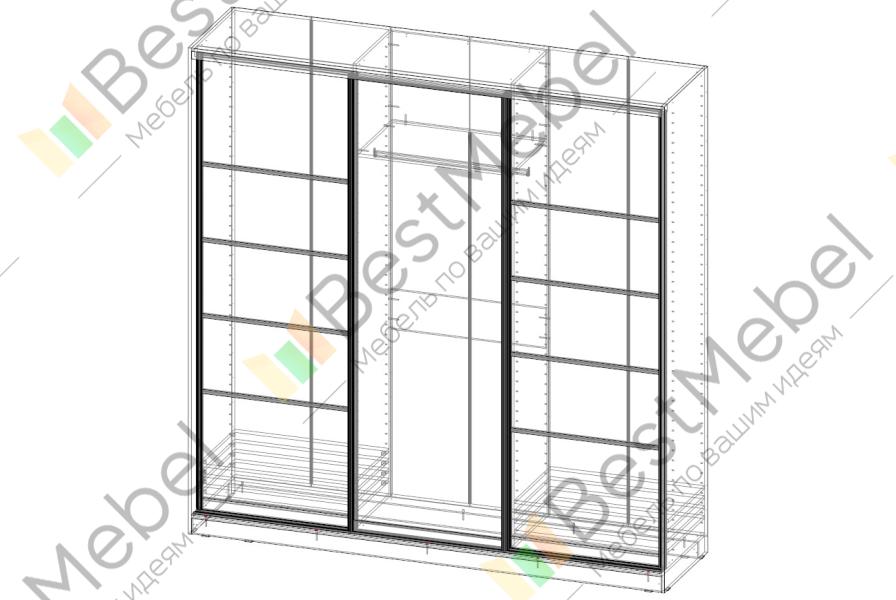 Шкаф-купе Town BMS – универсальная модель для спальни, прихожей или гостиной. Фасады трехдверного шкафа выполнены в сочетании классических древесных тонов и матовой вставки в центральной части. Конструкция сможет выгодно использовать доступное пространство, сэкономить полезную площадь комнаты и компактно разместить большое количество вещей – от одежды на плечиках до бытовых мелочей. Внутреннее наполнение представлено полками и штангой, в козырьке возможно установить встроенную подсветку. Купить шкаф-купе Town BMS приглашаем в наш интернет-магазин.