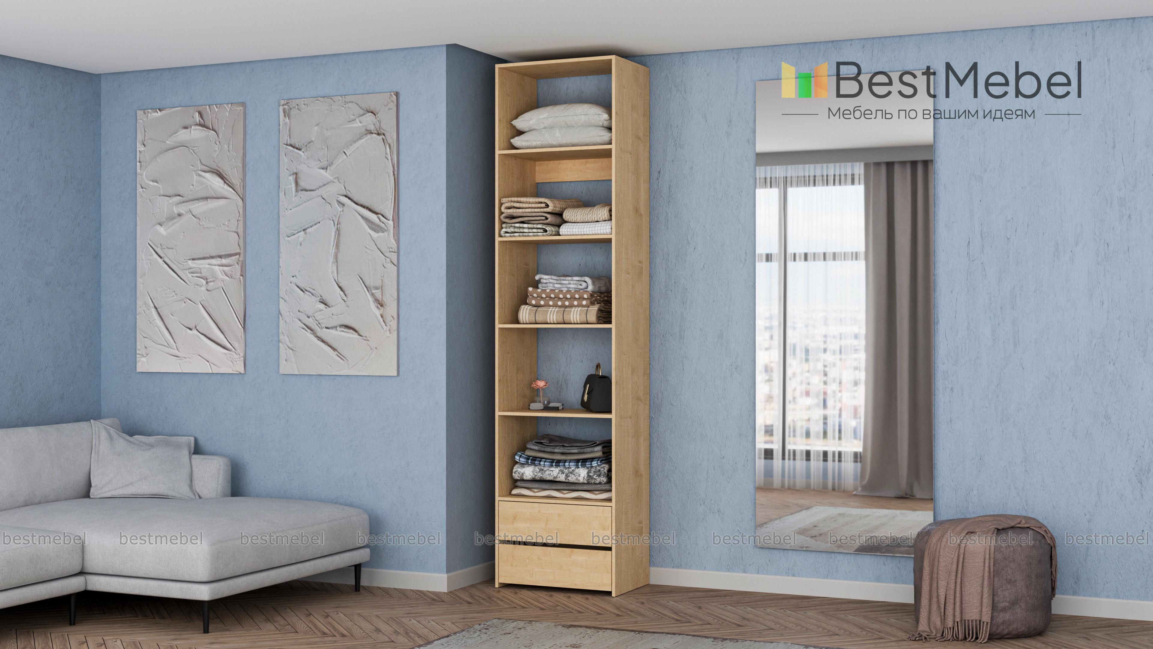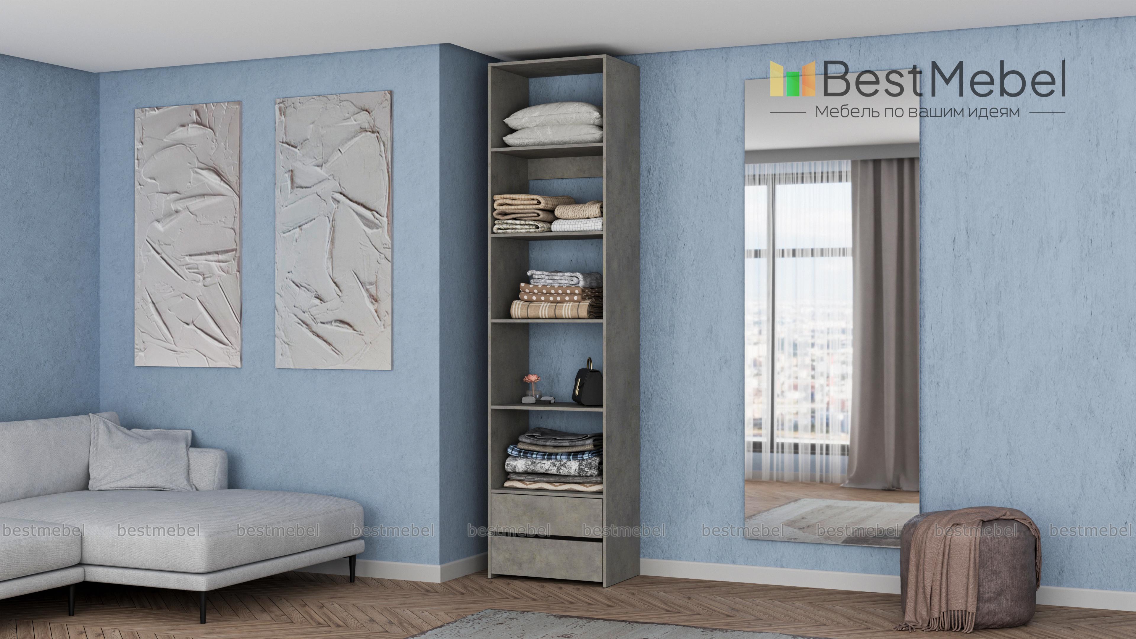 Стеллаж для одежды Мирта 36 BMS позволит вам сохранить порядок в доме. Благодаря компактным габаритам конструкция занимает минимум места, а дизайн сочетается с большинством современной мебели. Помимо стандартных открытых полок стеллаж укомплектован парой выдвижных ящиков в основании, что делает его удобным для хранения мелких вещей. Купить стеллаж для одежды Мирта 36 BMS, изготовленный по индивидуальным размерам, вы сможете на сайте нашего интернет-магазина.