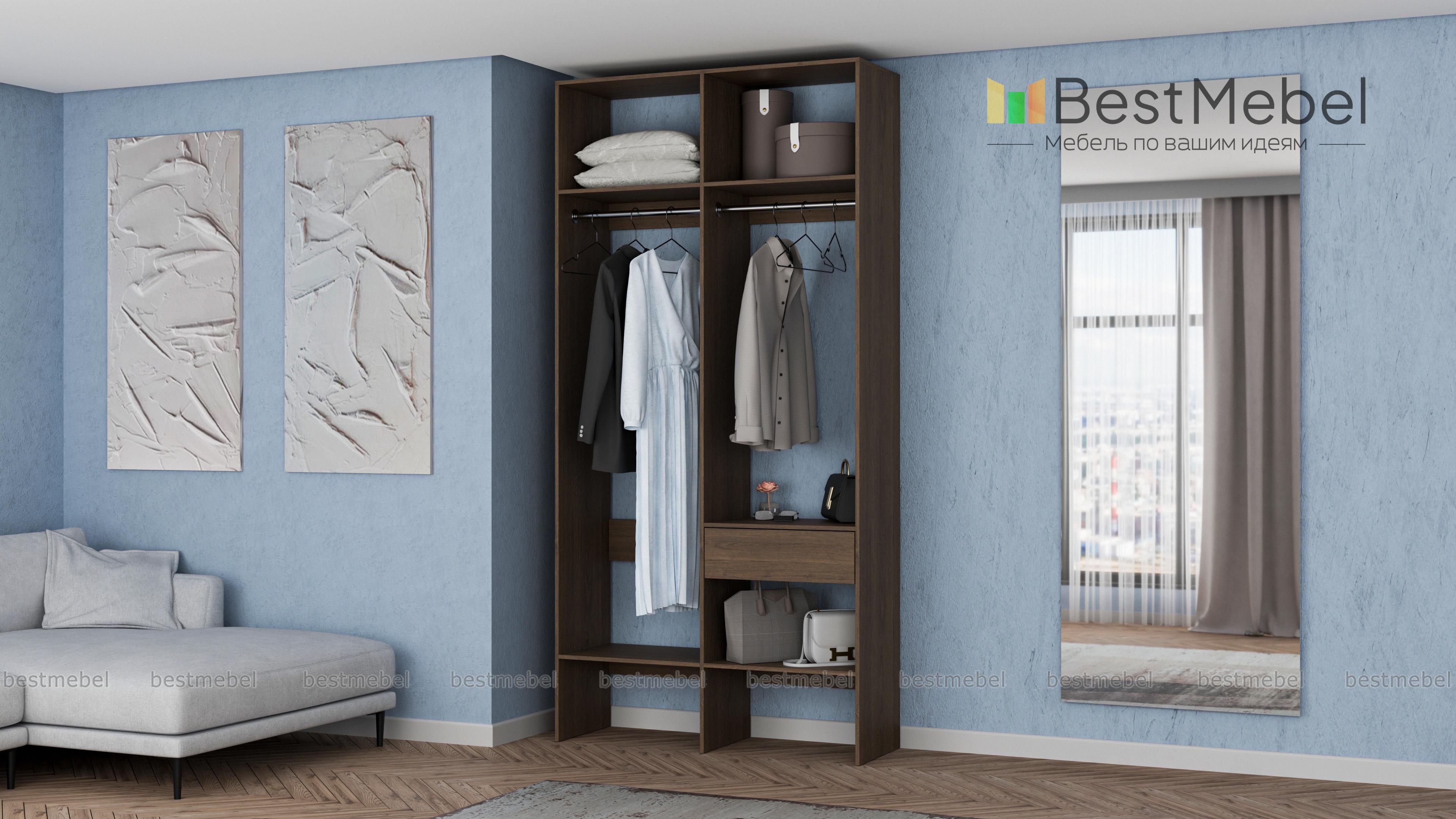 Стеллаж для одежды Мирта 42 BMS для гардеробной или прихожей выполнен в нейтральном светлом оттенке из ламинированной ДСП. Компактная и легкая двухсекционная конструкция объединила два платяных отделения разной высоты, верхние и нижние полки, а также выдвижной ящик, предназначенный для мелочей. В открытом стеллаже будут всегда на виду ваша повседневная одежда и обувь. Купить стеллаж для одежды Мирта 42 BMS вы сможете в нашем интернет-магазине, самостоятельно подобрав размеры и цвет.