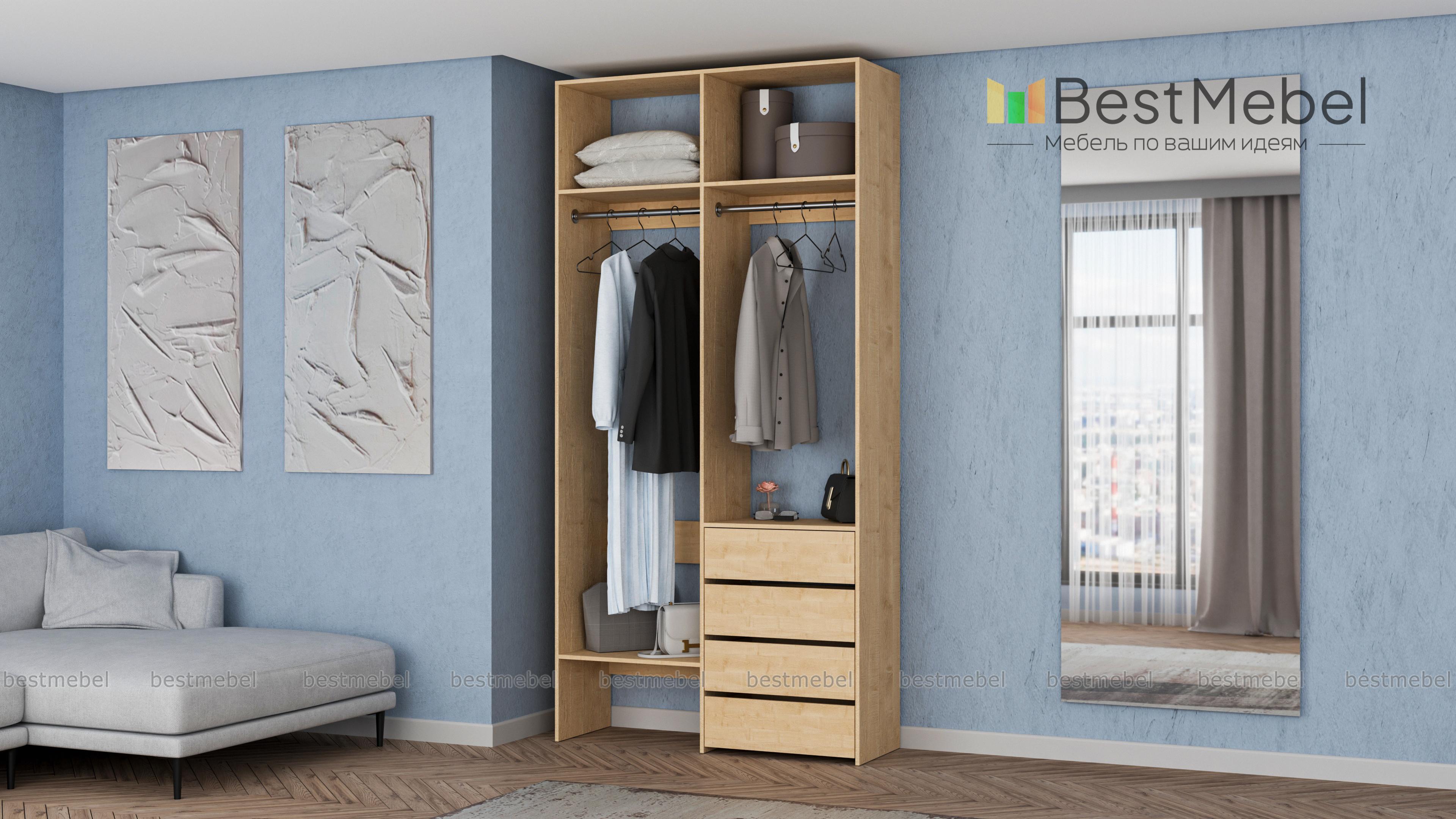 Стеллаж для одежды Мирта 45 BMS позволяет выделить зоны для хранения разных вещей. Комплектация включает в себя отделения со штангами для короткой и длинной одежды, полки сверху и снизу, а также ряд из четырех выдвижных ящиков справа. Двухсекционный стеллаж выполнен в светлом базовом оттенке и отлично смотрится на небольшом метраже. Купить стеллаж для одежды Мирта 45 BMS вы всегда сможете в нашем интернет-магазине, подобрав нужные размеры и оттенок по каталогу.