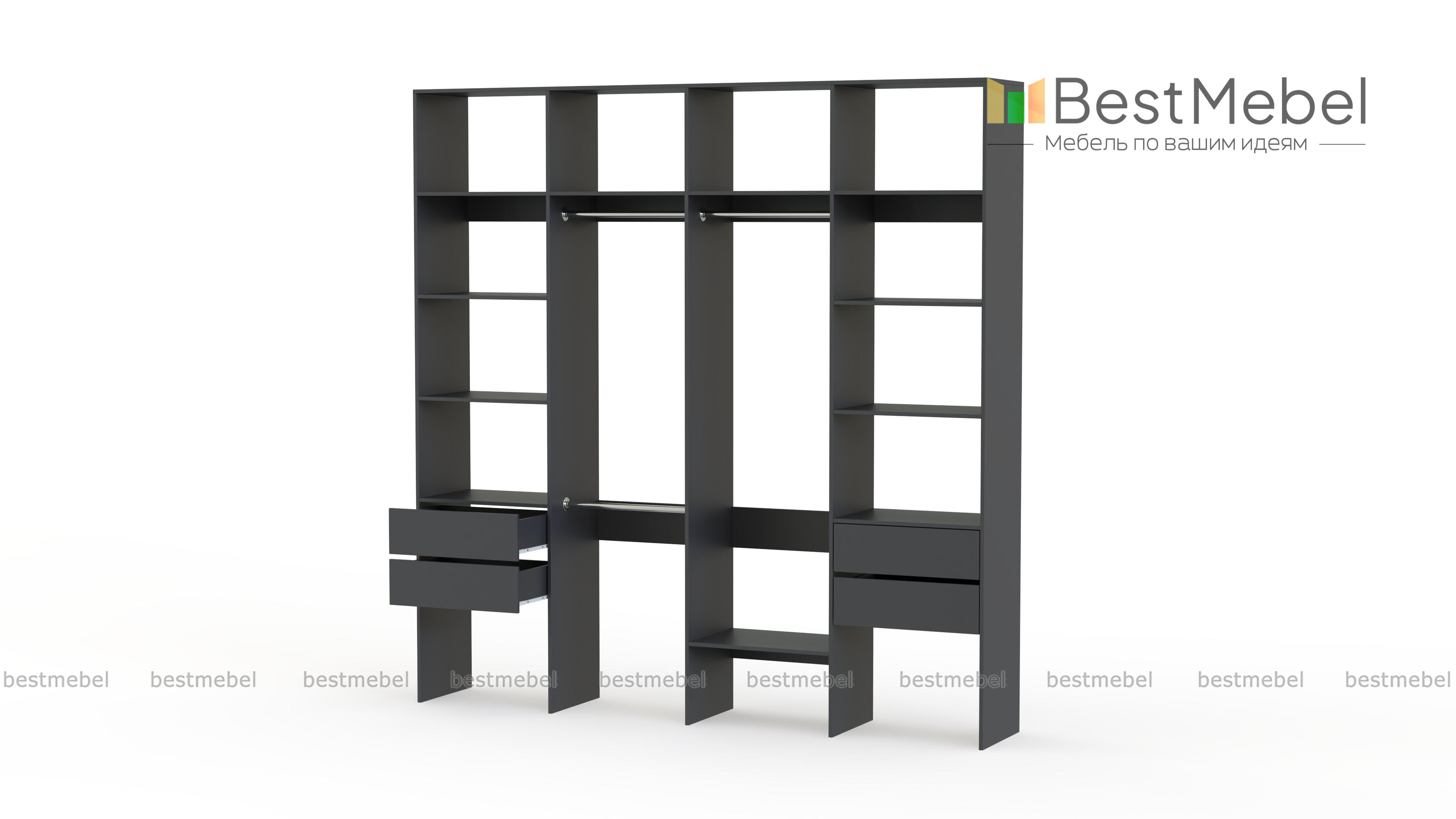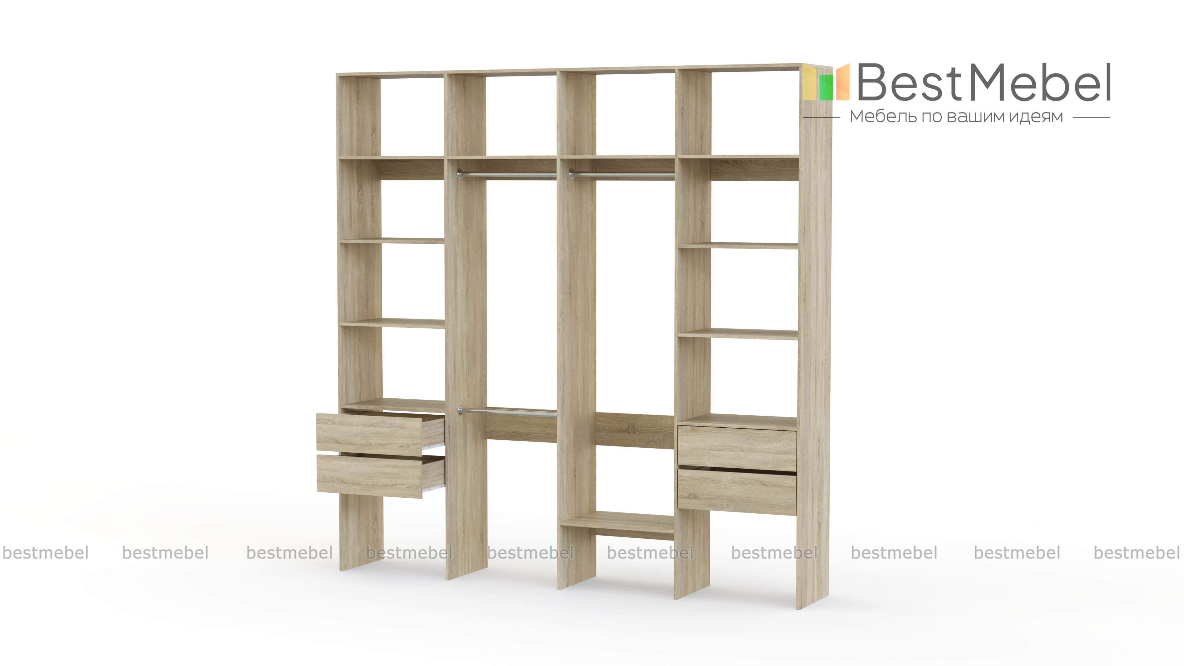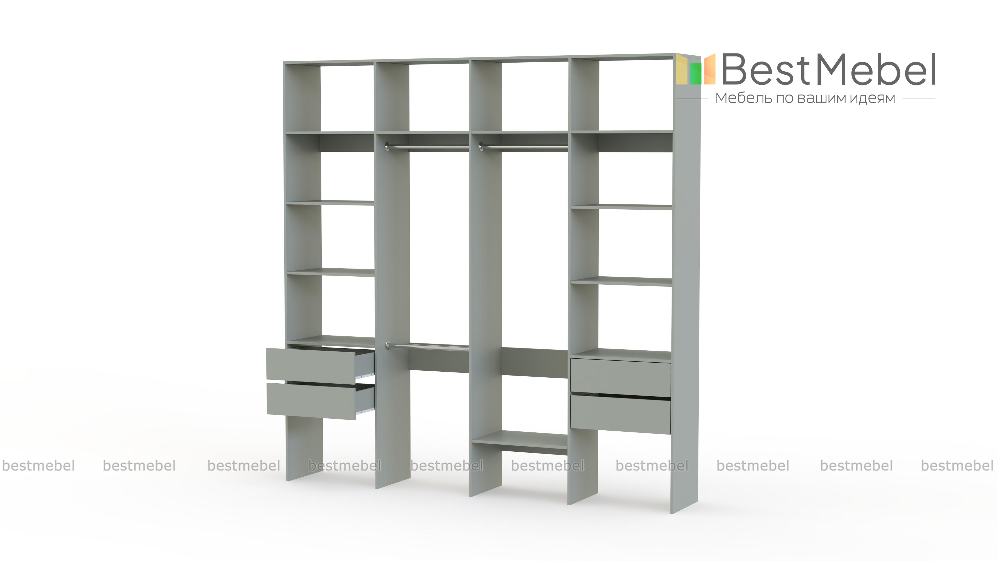 Стеллаж для одежды Мирта 66 BMS поможет вам разгрузить пространство квартиры от громоздких шкафов. Комплектация включает в себя разноуровневые штанги для одежды, вместительные полки и четыре выдвижных ящика, позволяющих хранить в порядке мелкие вещи. Благодаря использованию ламинированной плиты стеллаж доступен по цене, отличается прочностью и имеет широкую цветовую палитру. Купить стеллаж для одежды Мирта 66 BMS с изготовлением по индивидуальным размерам приглашаем в наш интернет-магазин.
