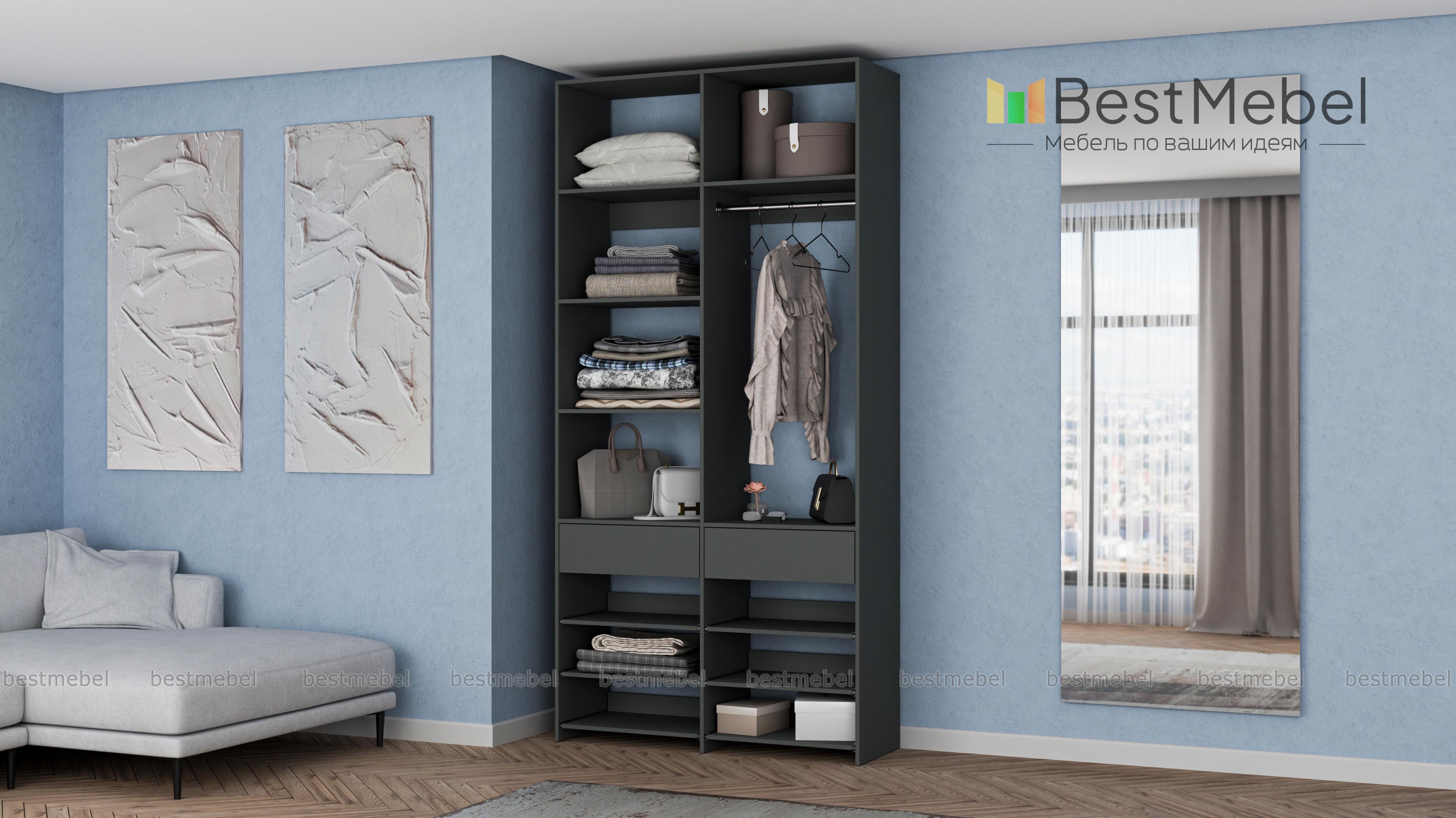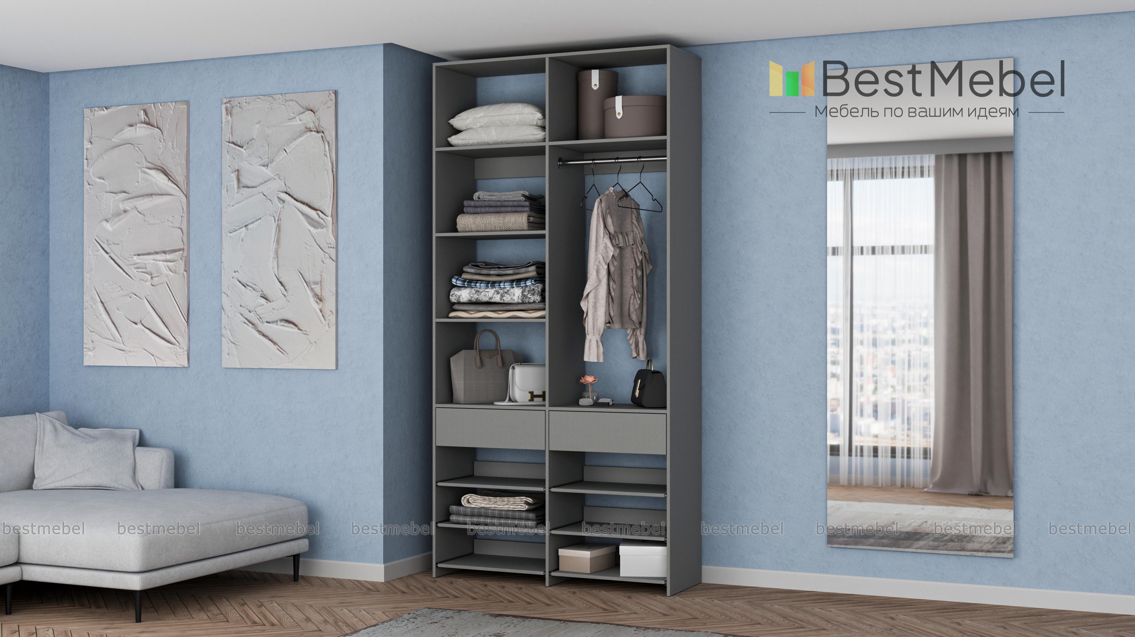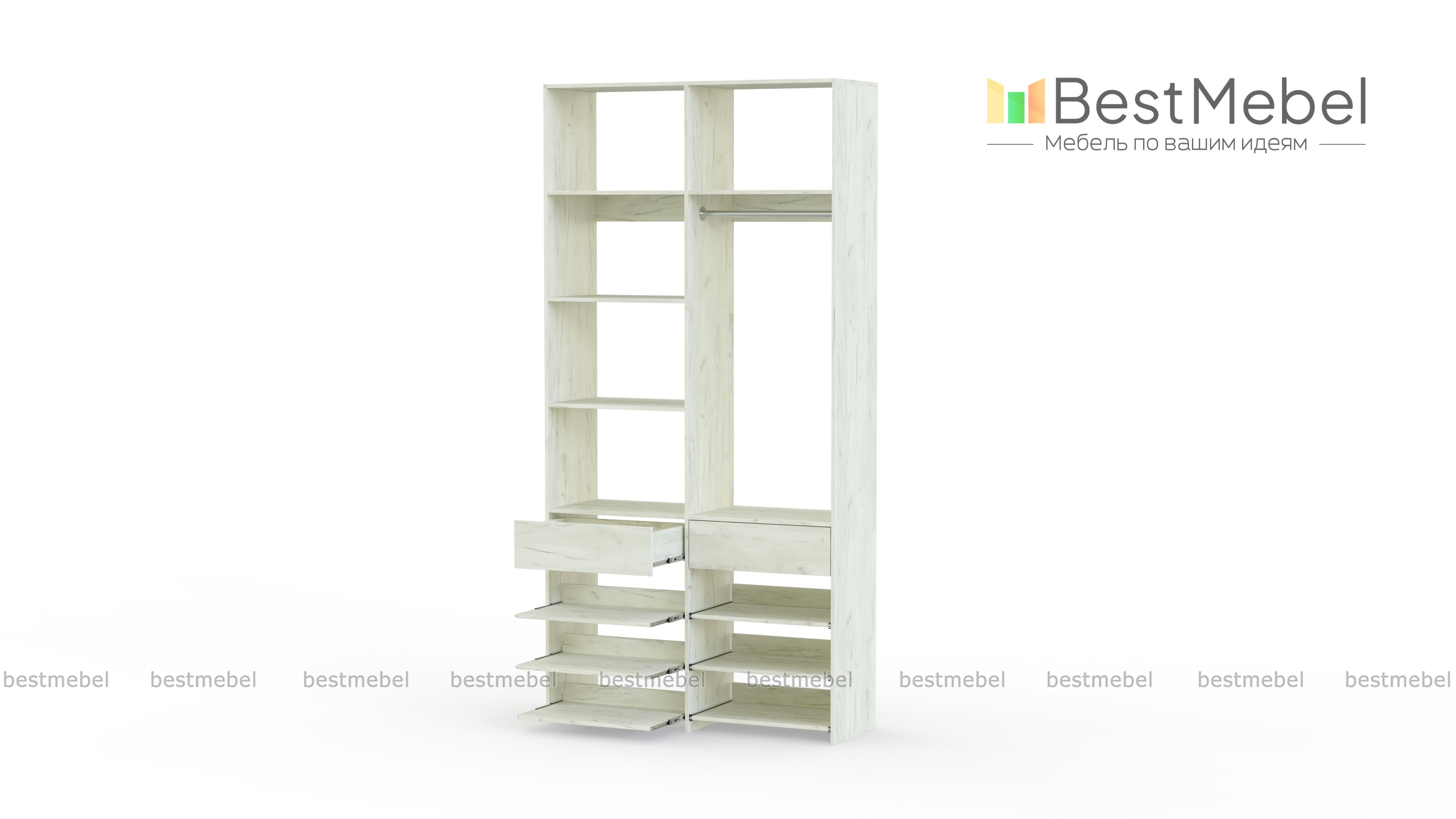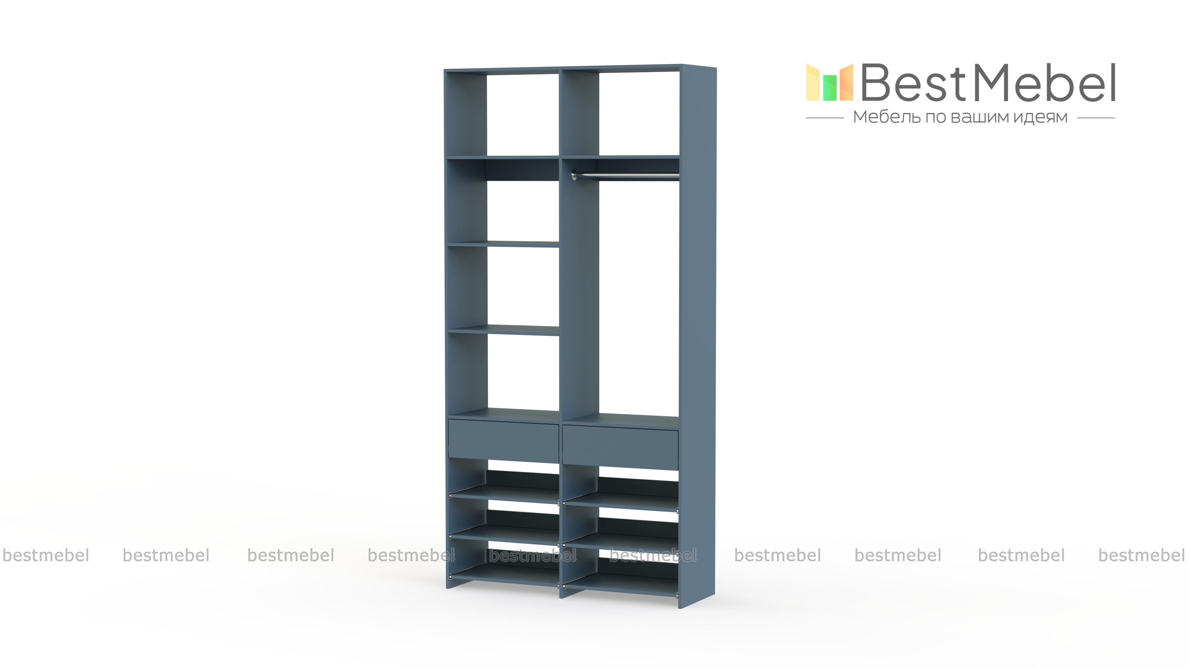 Стеллаж для одежды Мирта 82 BMS эффективно использует ограниченную площадь маленькой прихожей или гардеробной комнаты. В конфигурации со штангой, двумя ящиками, выдвижными и стационарными полками есть место для одежды, обуви и мелких аксессуаров. Ламинированное покрытие стеллажа устойчиво к влаге и появлению царапин, легко моется и эстетично выглядит. Купить стеллаж для одежды Мирта 82 BMS в оттенках нашего каталога и любом удобном размере вы сможете на сайте интернет-магазина.