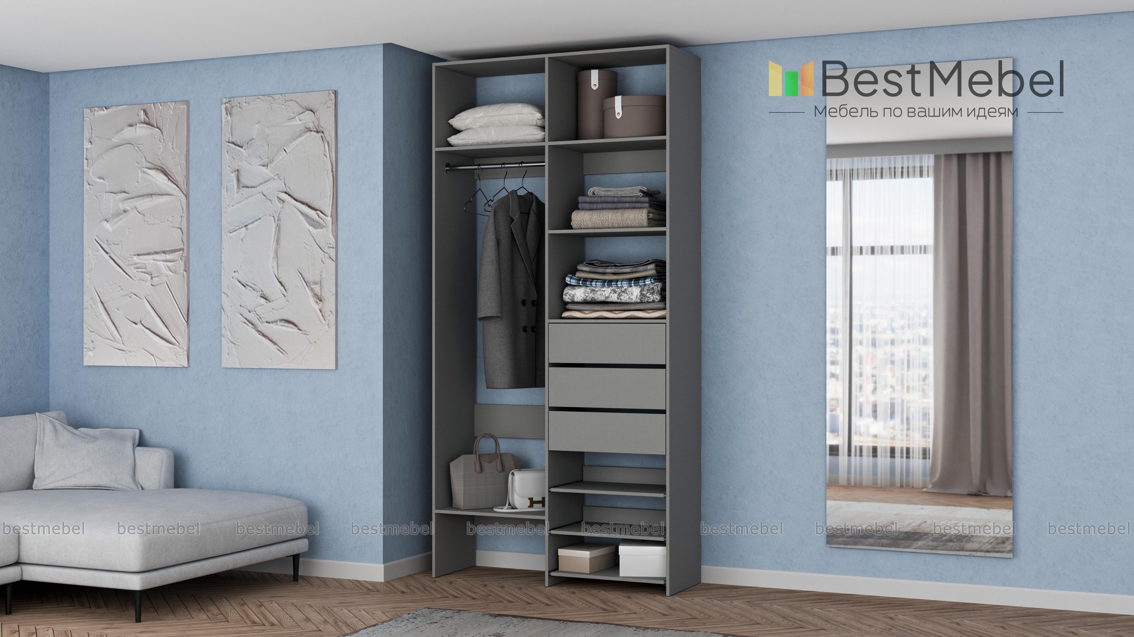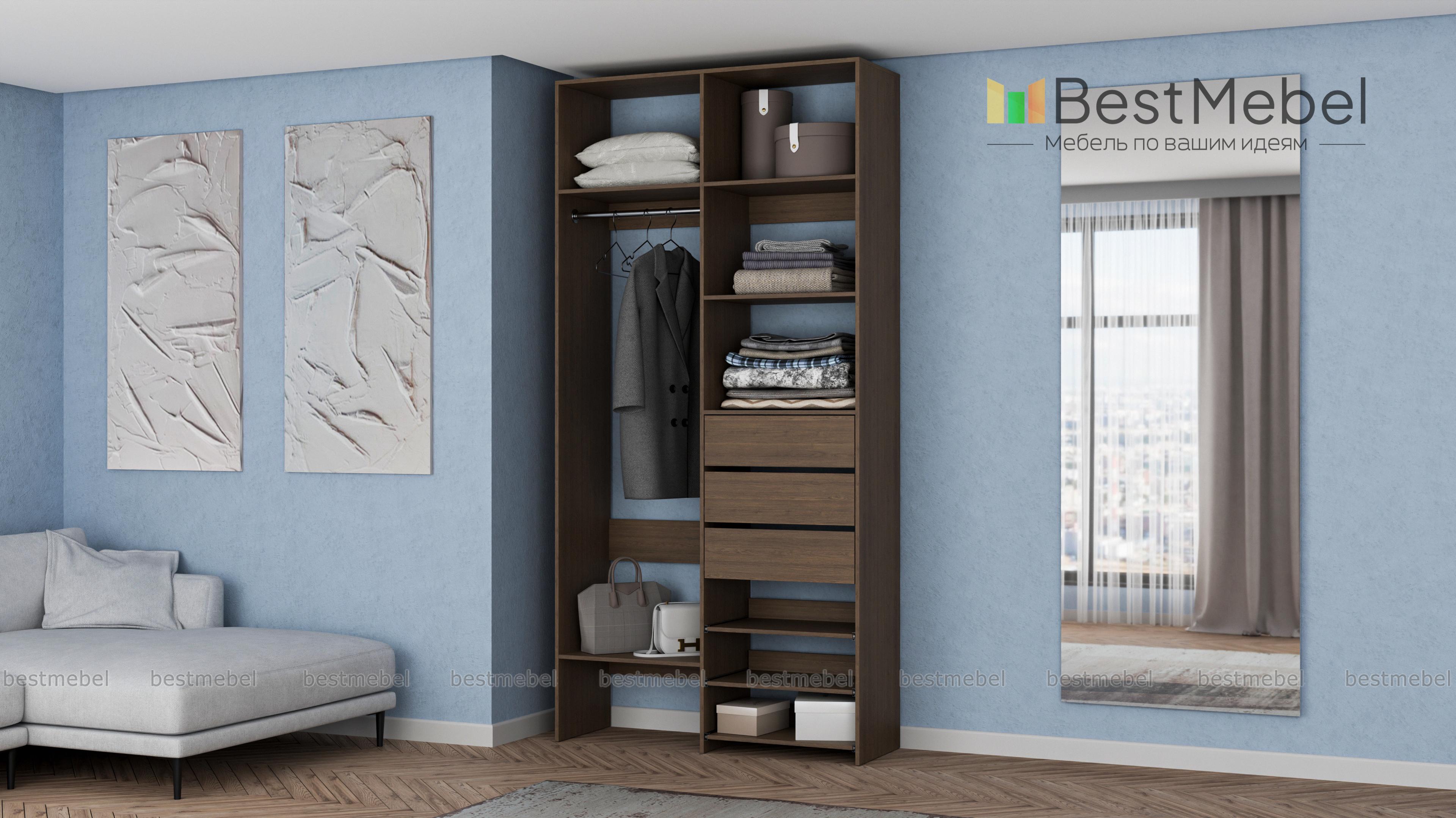 Стеллаж для одежды Мирта 84 BMS обеспечит базовому гардеробу компактное и бережное хранение. Платяная штанга, три ящика, полки стационарные и выдвижные располагаются на удобной для ежедневного пользования высоте. Благодаря небольшой ширине стеллаж легко впишется в ограниченное пространство гардеробной, маленькой спальни или прихожей. Купить стеллаж для одежды Мирта 84 BMS вы сможете недорого в нашем интернет-магазине, выбрав подходящий размер и цвет.
