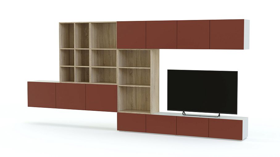 Гостиная Альфия 02 BMS станет главным элементом дизайна современной квартиры или студии. Минималистичный дизайн в сочетании с ярким цветовым решением делают модель запоминающейся. Композиция включает в себя широкую тумбу, горизонтальные модули с глухими фасадами в ярком оттенке и открытые полки для книг и интерьерных украшений, выполненные в контрастном древесном цвете. Купить гостиную Альфия 02 BMS и эффектно оформить телезону вам поможет наш интернет-магазин.