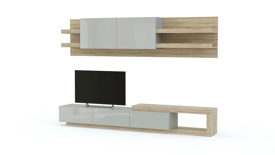 Гостиная МДФ глянец BMS станет отличным выбором для тех, кто хотел бы дополнить интерьер ярким акцентом. Уместная и в просторном, и в небольшом помещении, модульная система выполнена в сочетании эффектного и износостойкого цветного глянца и насыщенных древесных тонов. В комплект входят широкая низкая тумба под ТВ с глухими секциями и надстройкой с нишей и навесная панель с открытыми книжными полками и распашным шкафом. Купить гостиную МДФ глянец BMS для уютного функционального пространства приглашаем в наш интернет-магазин.