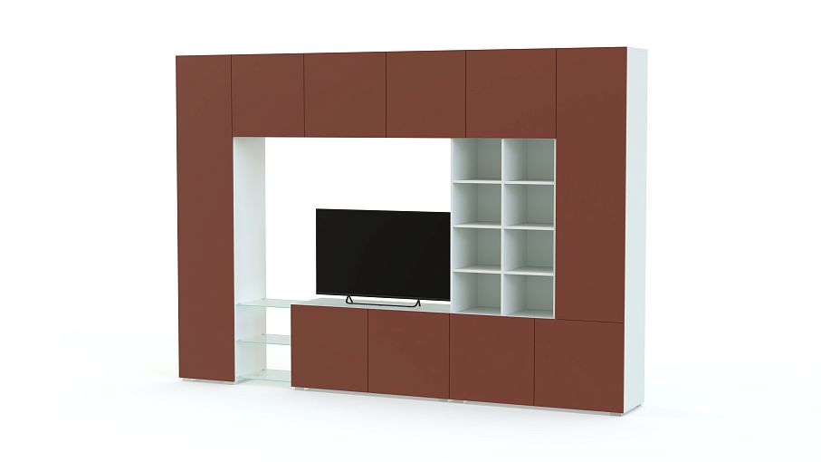 Стенка Купертино Некст 1.1 BMS – это отличная вместительность, визуальная легкость и эффектный современный дизайн. Строгая геометрия стиля хай-тек подчеркнута лаконичной простотой матовых цветных фасадов без ручек. В комплект входят высокие распашные колонки с полками, тумба под ТВ, подвесные секции и внутренний стеллаж. Оригинальным акцентом станут стеклянные полки в нижней части композиции. Купить стенку Купертино Некст 1.1 BMS, подобрав необходимые параметры, приглашаем недорого в наш интернет-магазин.