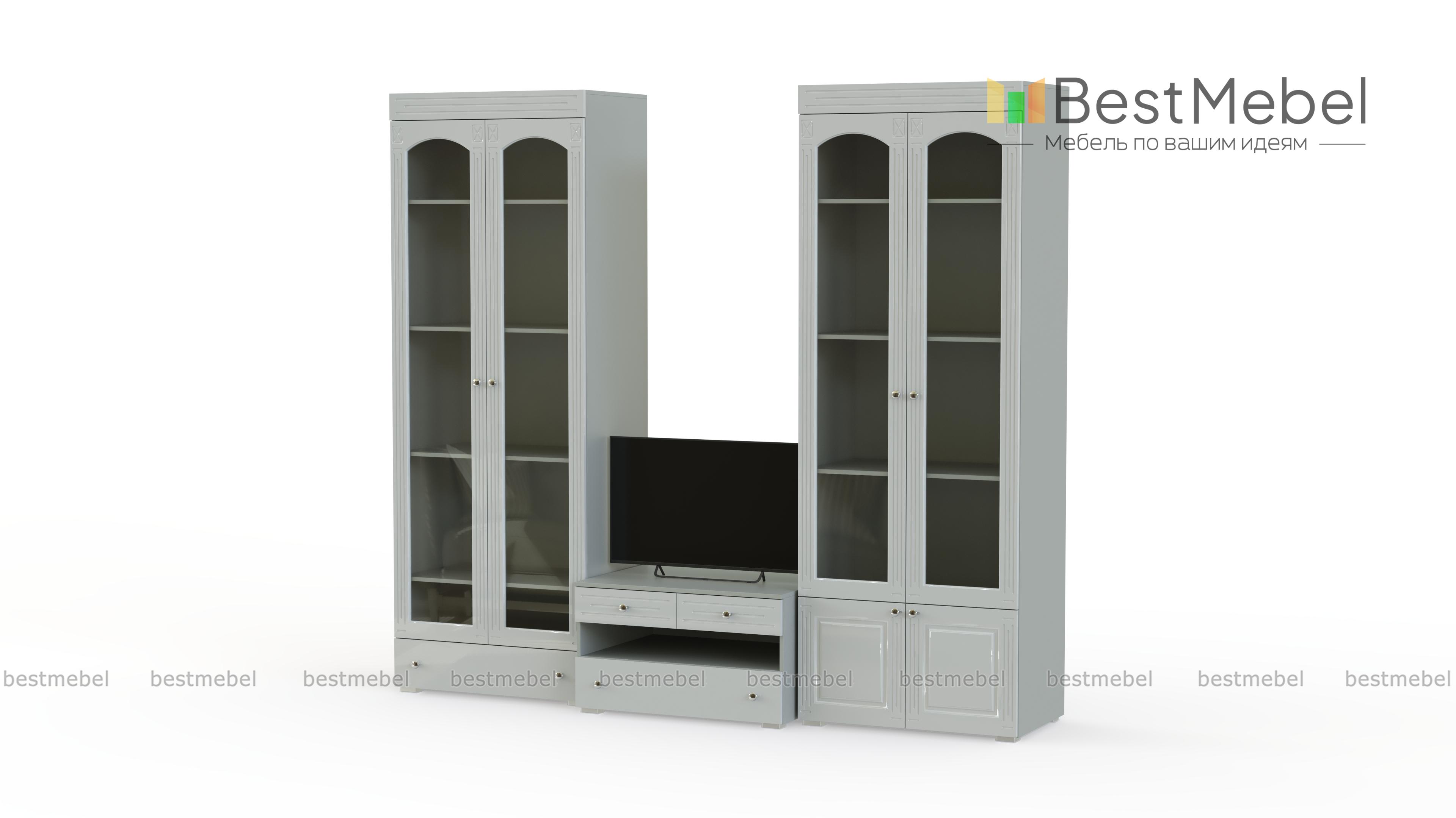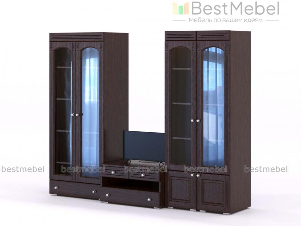 Стенка Маргарет BMS сочетает в себе практичность конструкции и элегантный дизайн в классическом стиле. Модульный набор для гостиной включает в себя широкую низкую тумбу под аппаратуру с выдвижными ящиками и нишей, вместительный платяной шкаф с ростовыми зеркалами на фасаде и две витрины. Выполненные в насыщенных темных тонах, предметы декорированы по фасаду фрезеровкой. Купить стенку Маргарет BMS для уютного и респектабельного интерьера приглашаем в наш интернет-магазин.