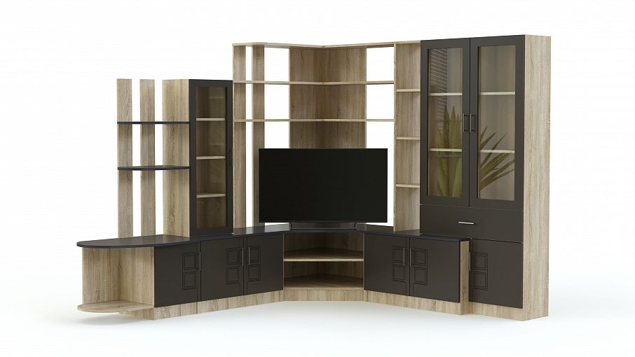 Легкая и изящная, несмотря на габариты, модульная стенка Велиант 14 МЭ BMS станет ярким акцентом интерьера вашего дома. Входящие в ее состав элементы имеют гармоничные пропорции и оригинально скомбинированы. Застекленные шкафы и тумбы с распашными дверцами контрастируют по цвету с разнообразными открытыми полками и центральной частью с нишей под ТВ. Фасады ящиков декорированы оригинальным орнаментом, стекла тонированные. Оптимальное цветовое решение вы сможете подобрать сами в нашем интернет – магазине.
