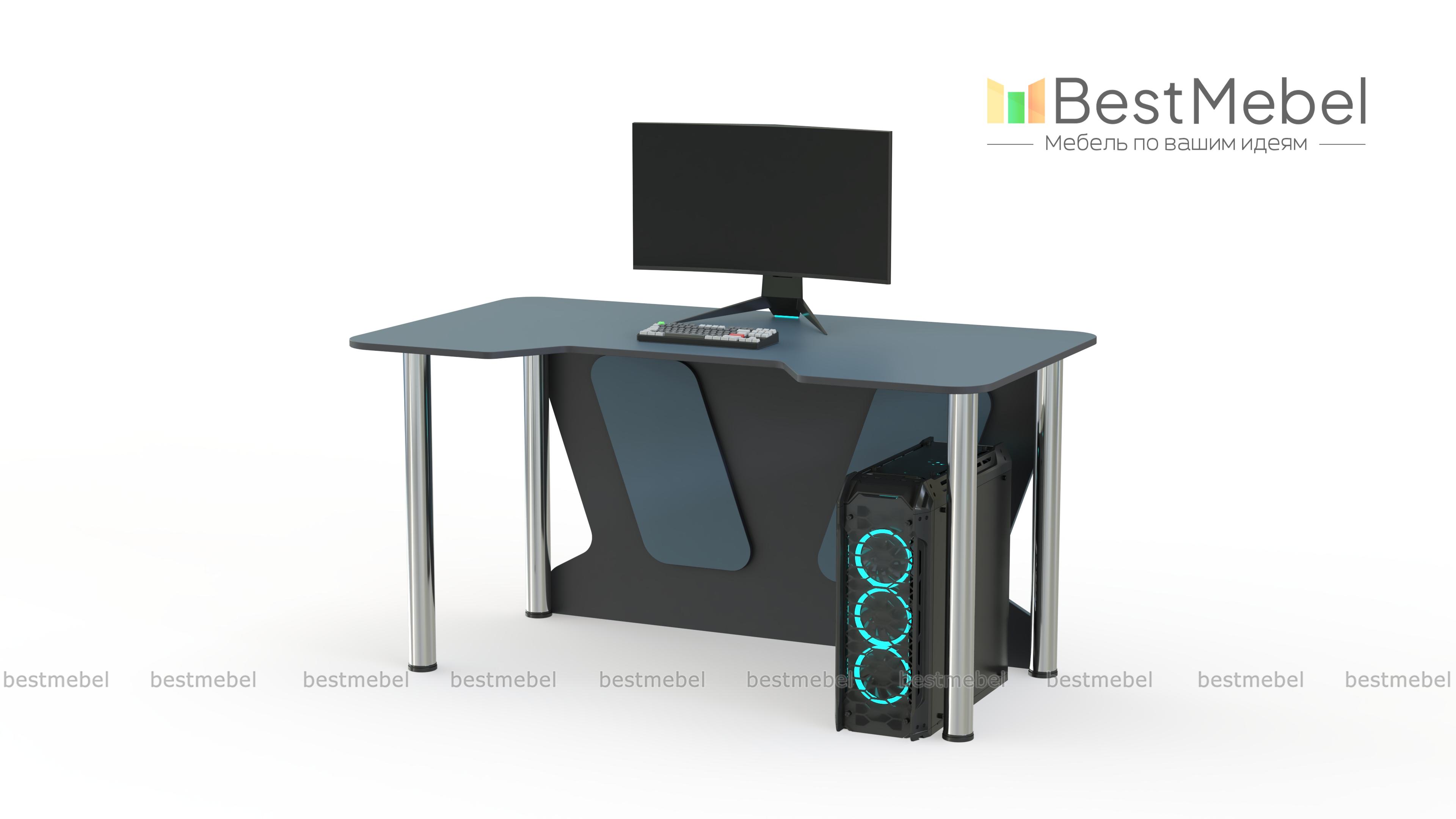 Геймерский стол Таун 13 BMS – базовый вариант для игры, учебы или работы. Легкий и устойчивый благодаря регулируемым хромированным опорам, стол оборудован просторной столешницей с безопасно скругленными углами и декоративно вырезанной задней стенкой. Трапециевидная выемка переднего края поможет занять правильное положение и снизит нагрузку на локти. Купить геймерский стол Таун 13 BMS с возможностью изготовления по индивидуальным размерам приглашаем в наш интернет-магазин.