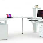 Угловой письменный стол для двоих Рим 1 BMS выполнен в белом цвете и отличается элегантным современным дизайном. Визуально легкая модель П-образной формы занимает всю ширину комнаты и позволяет значительно сэкономить пространство. Композиция включает в себя две эргономичной формы столешницы, дополненные тумбами, выдвижным ящиком и открытыми полками для хранения рабочих материалов и канцелярских мелочей. Купить угловой письменный стол для двоих Рим 1 BMS приглашаем в наш интернет-магазин с учетом оптимальных параметров.