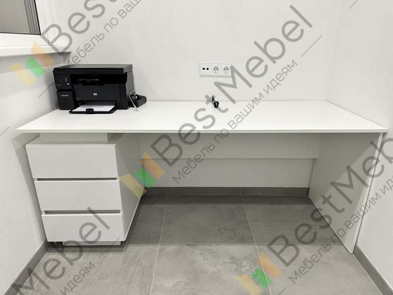 Заказ 00000246775, изделие Стол с ящиками Квинта 7 BMS (1800х770х700)Отличный стол прекрасного качества. размер, цвет, расположение ящиков подбирали на сайте под заказ. Все получилось в точности как и хотели! Спасибо!