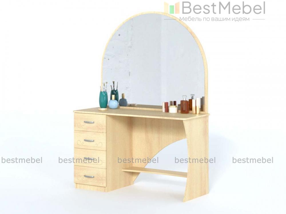 Стол туалетный Ланистер 18 BMS украсит интерьер спальни в классическом стиле и сделает уход за собой максимально комфортным. Изящная модель, выполненная в универсальном светлом оттенке, декорирована по фасаду легкой фрезеровкой. Столик оборудован тумбой с четырьмя выдвижными ящиками для хранения мелочей, нижней полкой, просторной столешницей и большим скругленным зеркалом. Купить стол туалетный Ланистер 18 BMS по лучшей цене вы сможете в нашем интернет-магазине.