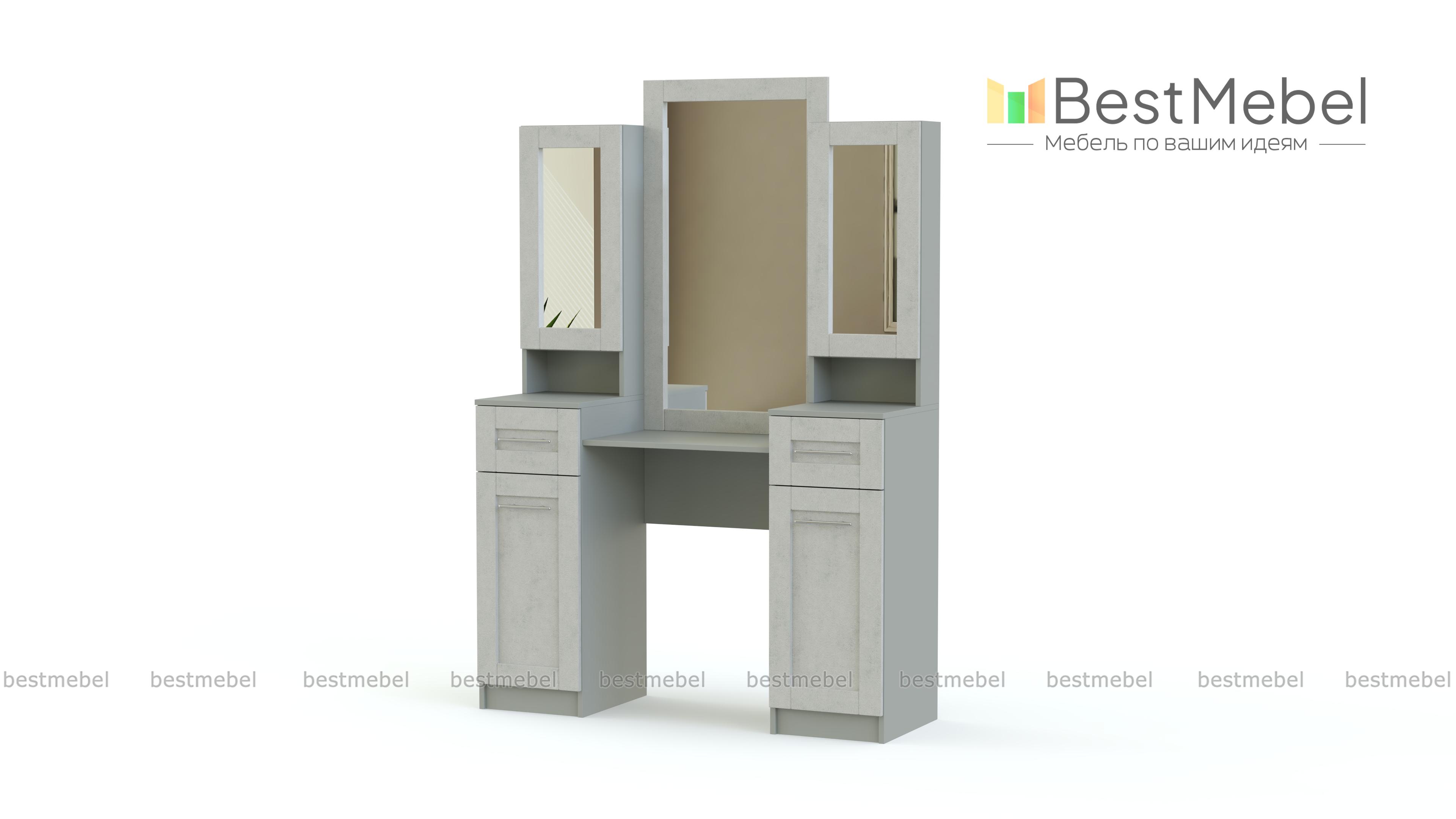 Туалетный стол Гаурон №1.1 BMS благодаря продуманной и вместительной конструкции поможет расположить максимальное количество всех необходимых уходовых средств, косметики и других предметов первой необходимости в одном месте. За двумя зеркальными фасадами скрыты отделения с полками, а сами распашные отделения позволяют использовать модель как трюмо. Изделие оборудовано двумя выдвижными ящиками для хранения мелочей и двумя распашными отделениями с глухими фасадами. Износостойкие и долговечные материалы сохранят эстетичный вид модели на долгое время использования. Купить туалетный стол Гаурон №1.1 BMS, подобрав необходимые размеры, приглашаем в наш интернет-магазин.