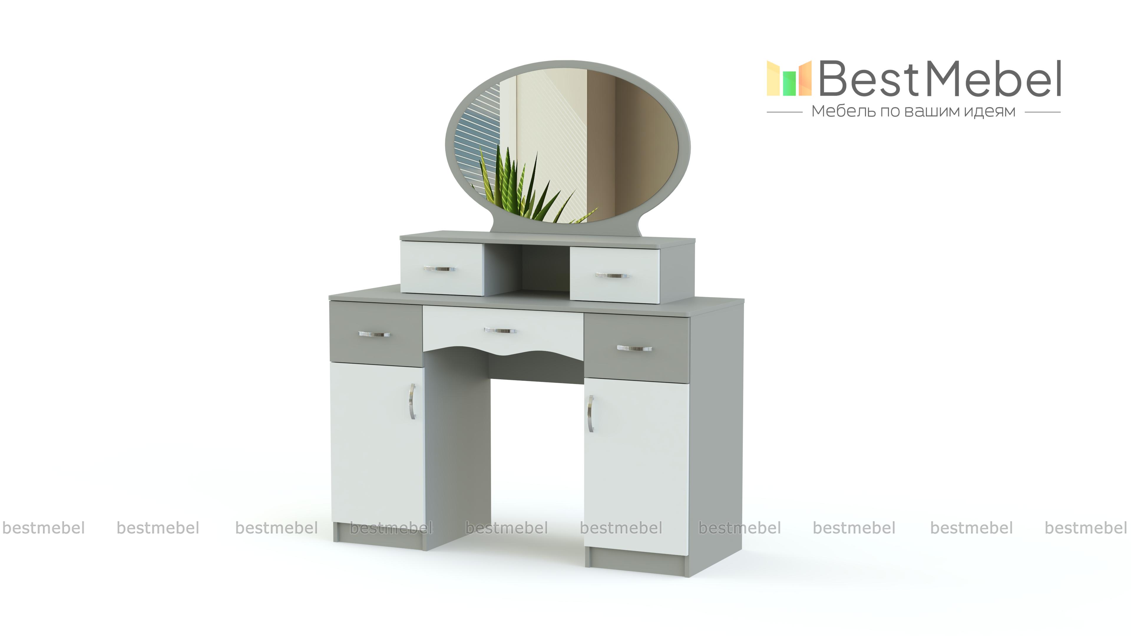 Этот очаровательный женственный столик – настоящий подарок поклонницам роскошных классических интерьеров. Овальное большое зеркало, расположенное горизонтально, дополняет полка с боковыми выдвижными ящичками для косметики и украшений. Под столешницей – вместительные тумбы для самых разных вещей. Туалетный столик Августин BMS смотрится особенно легко и изящно благодаря светлым тонам и затейливой фурнитуре. В спальне эта модель станет одним из основных акцентов.