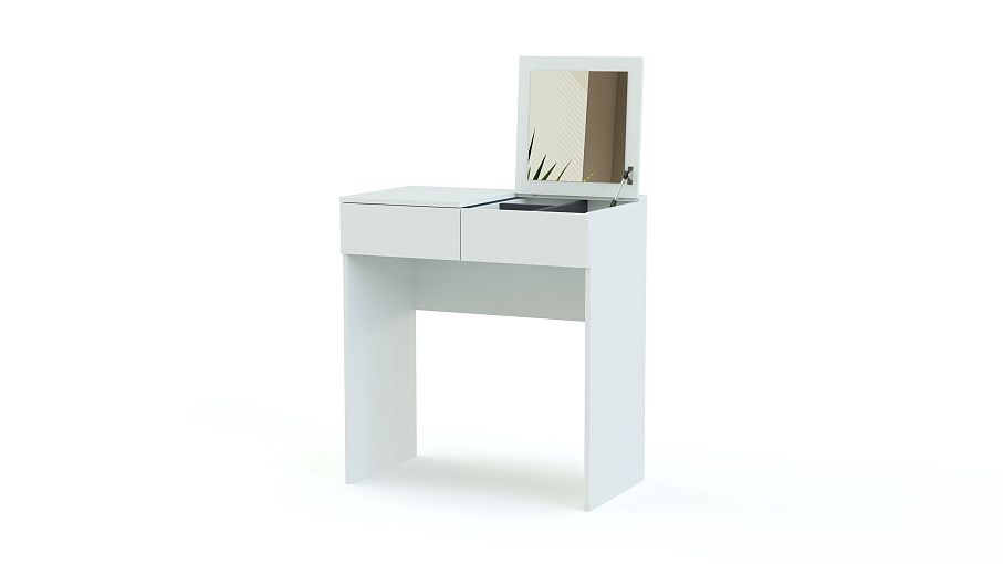 Этот миниатюрный столик легко найдет себе место и в небольшой спальне, и в салоне красоты. Раскладная конструкция позволит использовать его и как обычный рабочий, и превратит в стильную вещь для мэйк – апа. Столешница удобно разделена на секции, одна из них откидная, с зеркалом, вторая остается столиком. Два ящика - разделенный перегородками для мелочей и просторный выдвижной для предметов побольше. Выполненные в контрастном цвете, они выглядят на белоснежном фоне роскошно и нестандартно, делая туалетный столик BRIMNES BMS по – настоящему очаровательным.