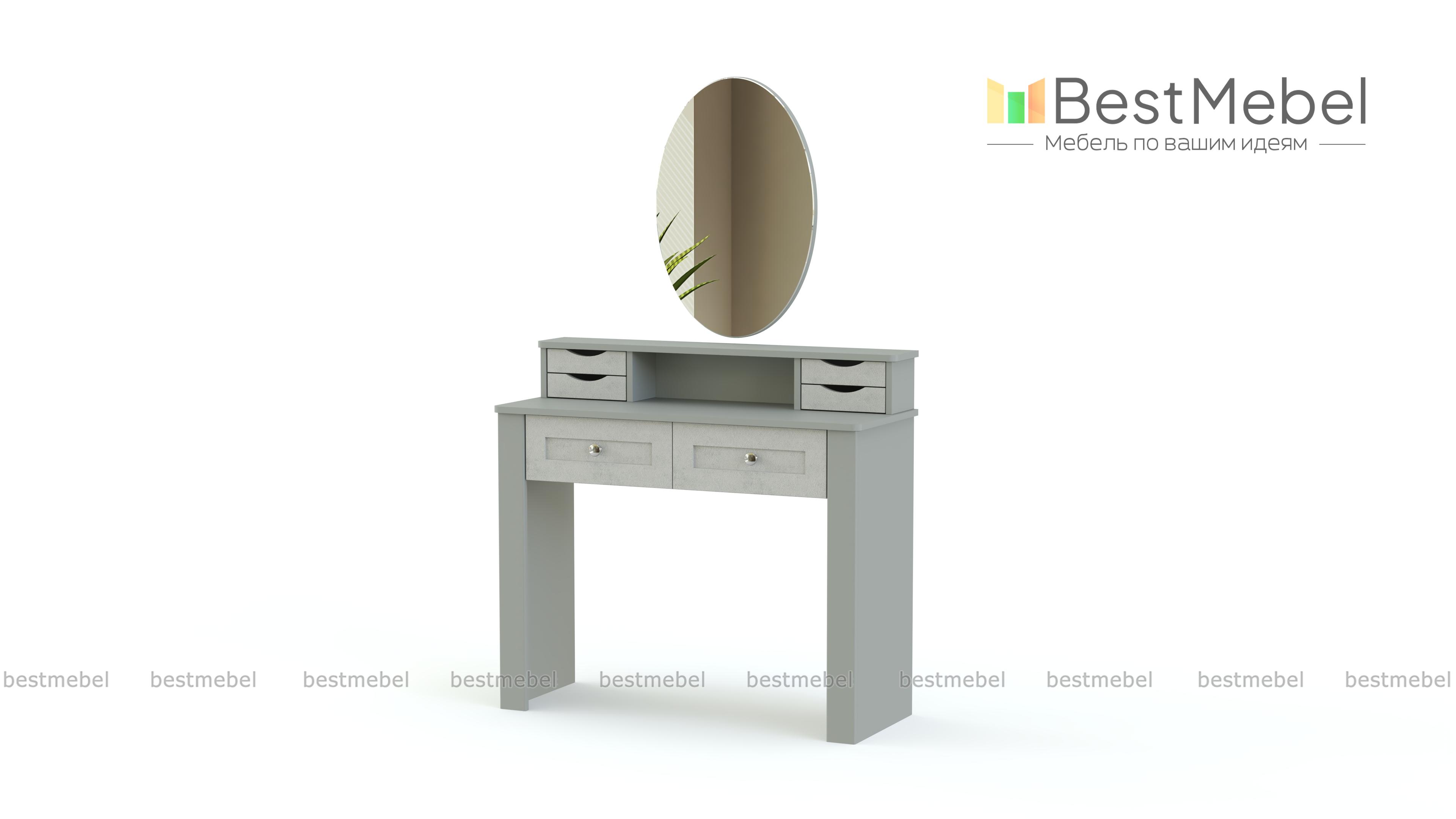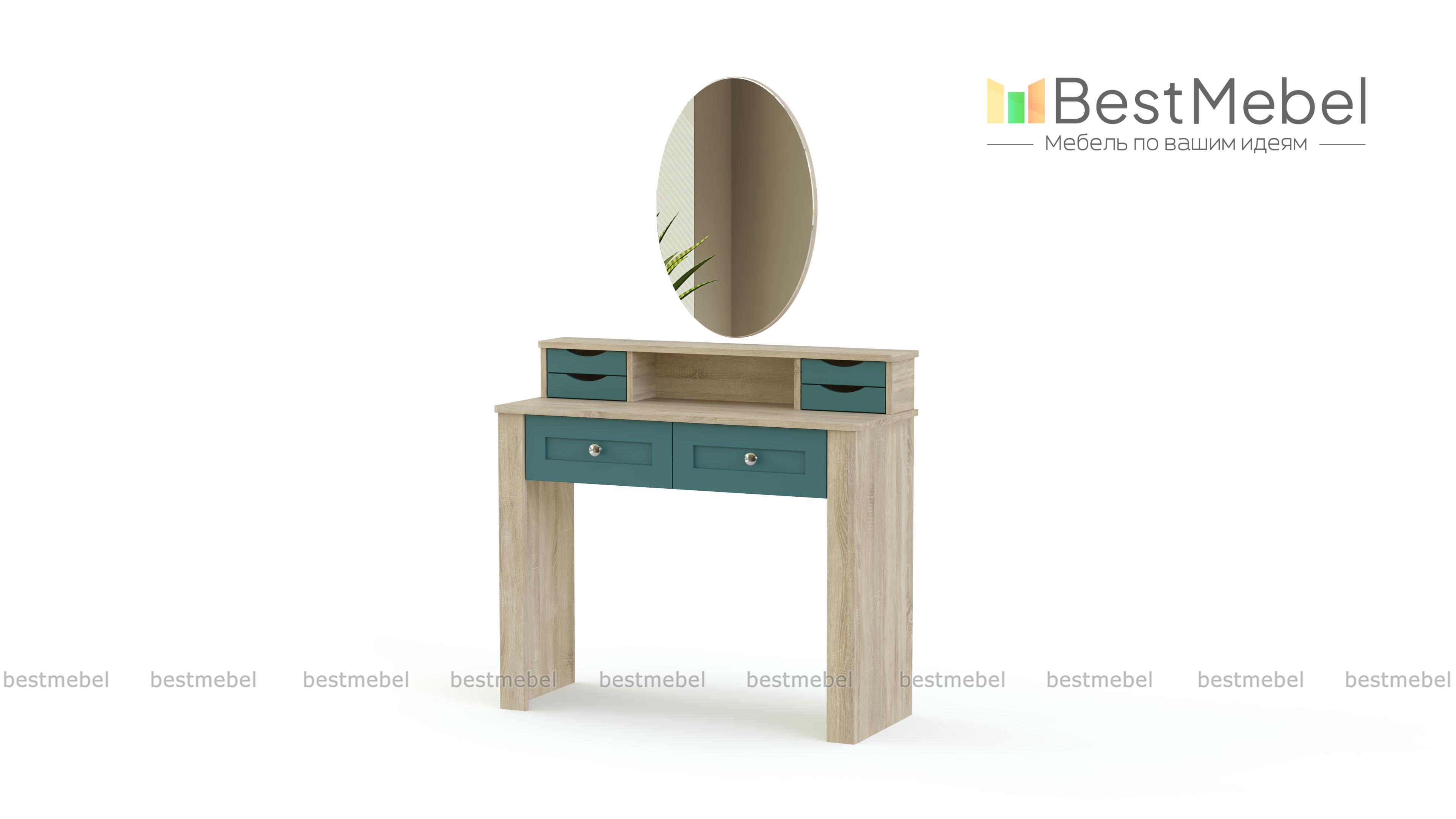 Туалетный столик Бриз 2.10 BMS придаст завершенный вид спальному интерьеру. Лаконичный прямоугольный столик с безопасно скругленными углами выглядит массивнее благодаря накладкам на фасаде и выполнен в светлых натуральных тонах. Разместить все необходимые мелочи помогут вам два выдвижных ящика под столешницей и надстройка с боковыми ящичками и нишей, а сделает уход за собой комфортным овальное зеркало. Купить туалетный столик Бриз 2.10 BMS приглашаем в наш интернет-магазин.