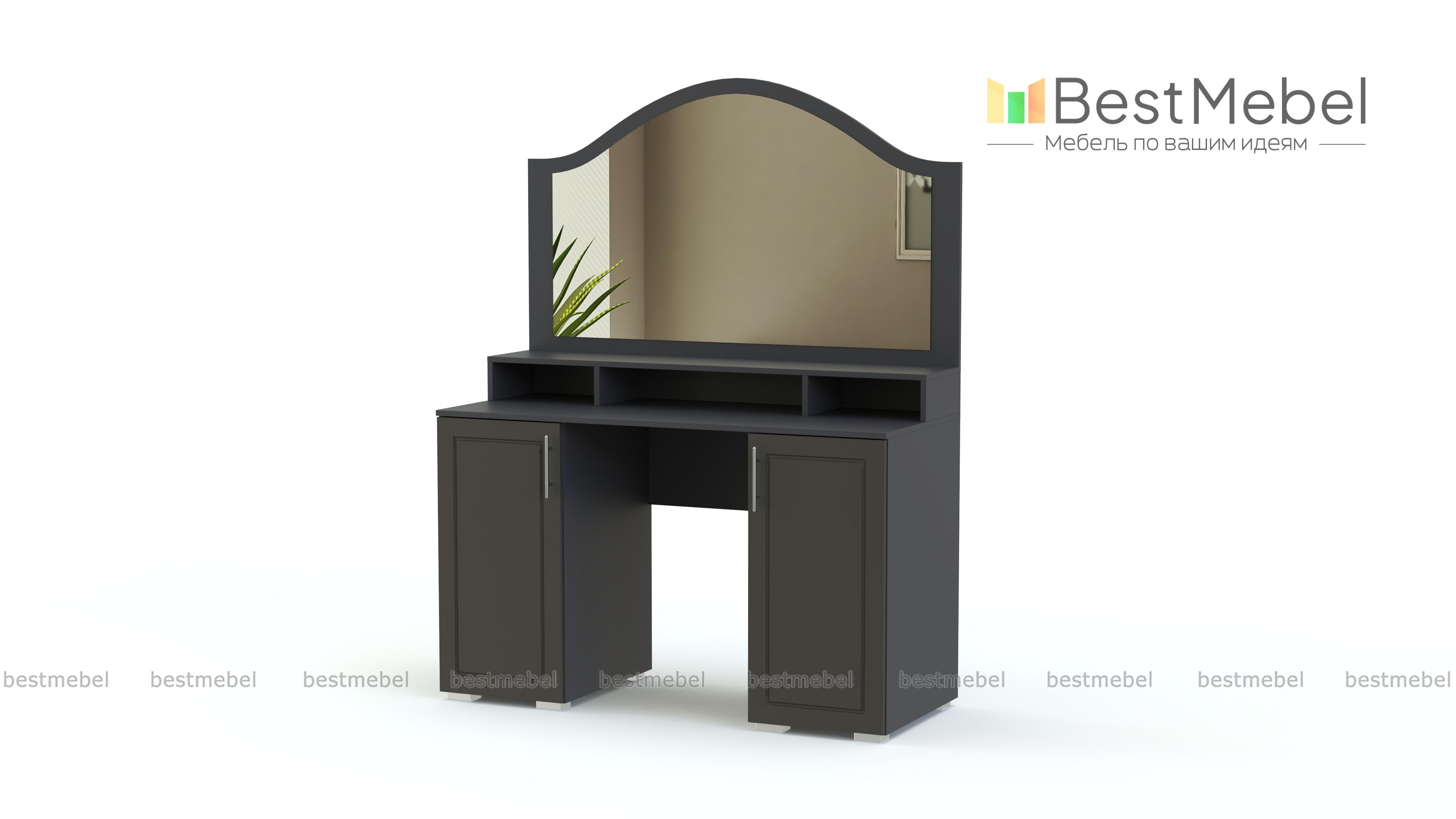 Туалетный столик Ханна BMS станет частью по-домашнему уютного спального интерьера, объединившего классику и современные тенденции. Изящный столик оборудован широкой столешницей, дополненной двумя распашными тумбами и надстройкой с открытыми полочками для мелочей, и панелью с зеркалом. Выполненная в серых тонах и декорированная по фасадам нежных оттенков фрезеровкой и ручками, модель смотрится легкой и украсит обстановку. Купить туалетный столик Ханна BMS, подобрав цветовое решение, приглашаем в наш интернет-магазин.