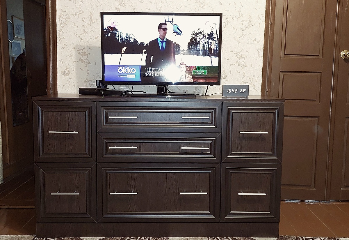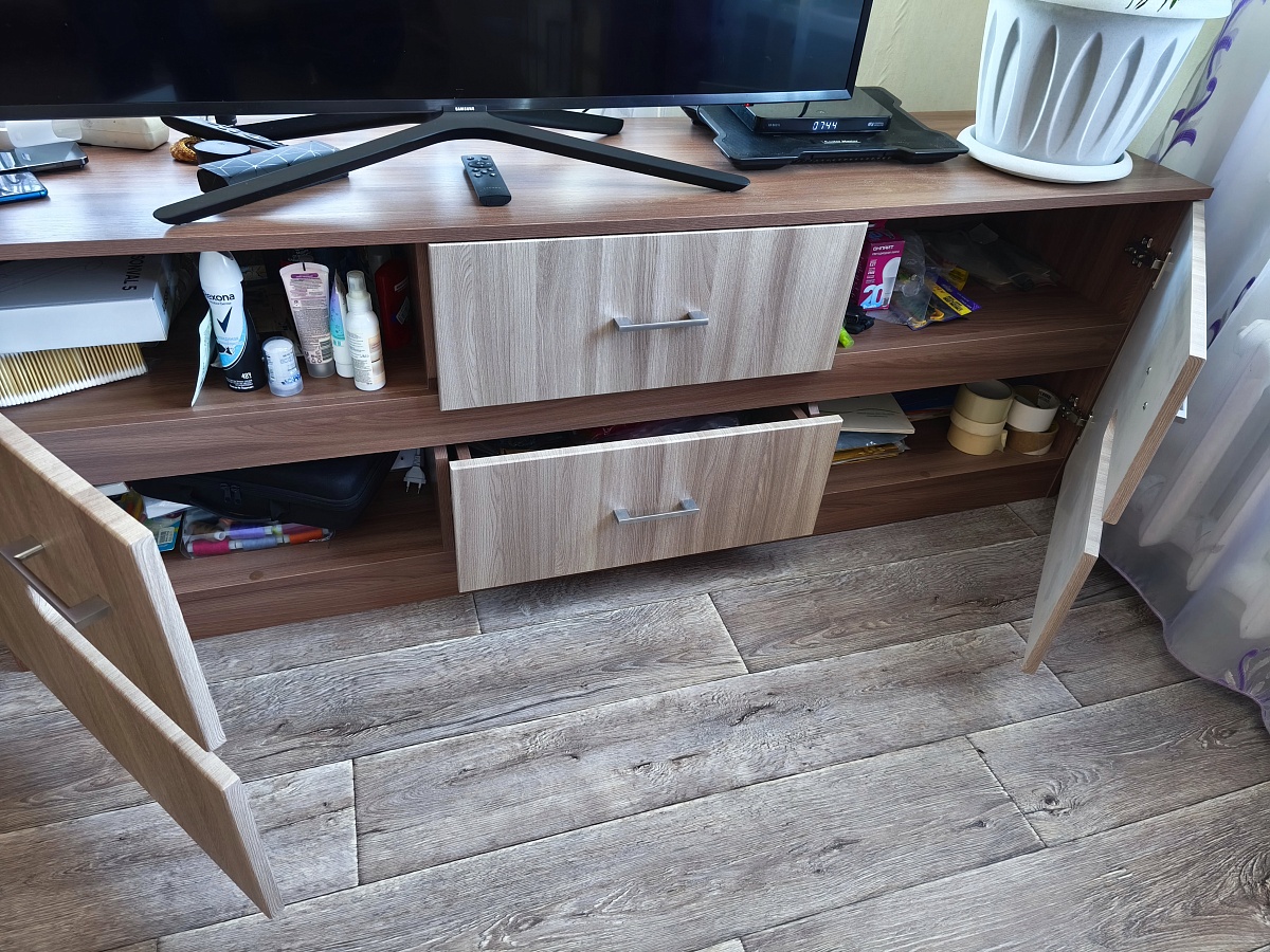Заказываю мебель в этом магазине уже не первый раз. Заказ 00000348610, изделие Тумба ТВ Вегас BMS (1700х593х420)Недавно приобрела эту тумбу под телевизор — и очень довольна! Дизайн современный, сочетание светло-коричневых и тёмных оттенков дерева не перегружает пространство. Что мне особенно понравилось: конструкция очень крепкая. Множество ящиков позволяют аккуратно хранить мелочи: пульты, кабели, документы, настольные игры. Всё под рукой, но скрыто от глаз — это очень удобно! Практичная поверхность. На верхней части тумбы свободно разместились телевизор, приставка и горшок с растением. Недостатков не обнаружила! Сборка прошла быстро и без сложностей (инструкция понятная). Благодаря конструктору, собрала тумбу под свои размеры.Итог: рекомендую эту тумбу всем, кто ищет стильное, практичное и надёжное решение для размещения телевизора и хранения мелочей. Однозначно 5/5! 😊