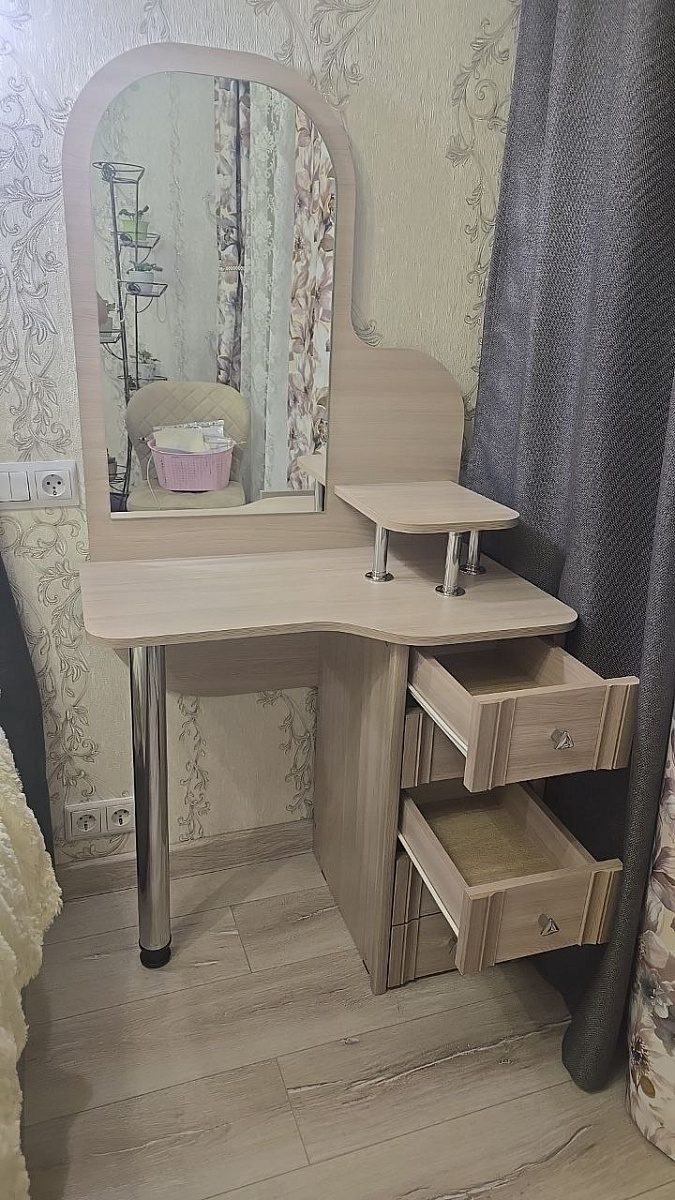 Чем нравится этот магазин, что можно закащать любую мебель по своим замерам. За это огромное спасибо. Заказ 00000949286, изделие ЭСКИЗ №00000949286 Туалетный столик Жизель-1 BMS (800х1600х500). Качество супер, фурнитура великолепна, все устраивает.Не первый раз заказываю и не первую мебель.