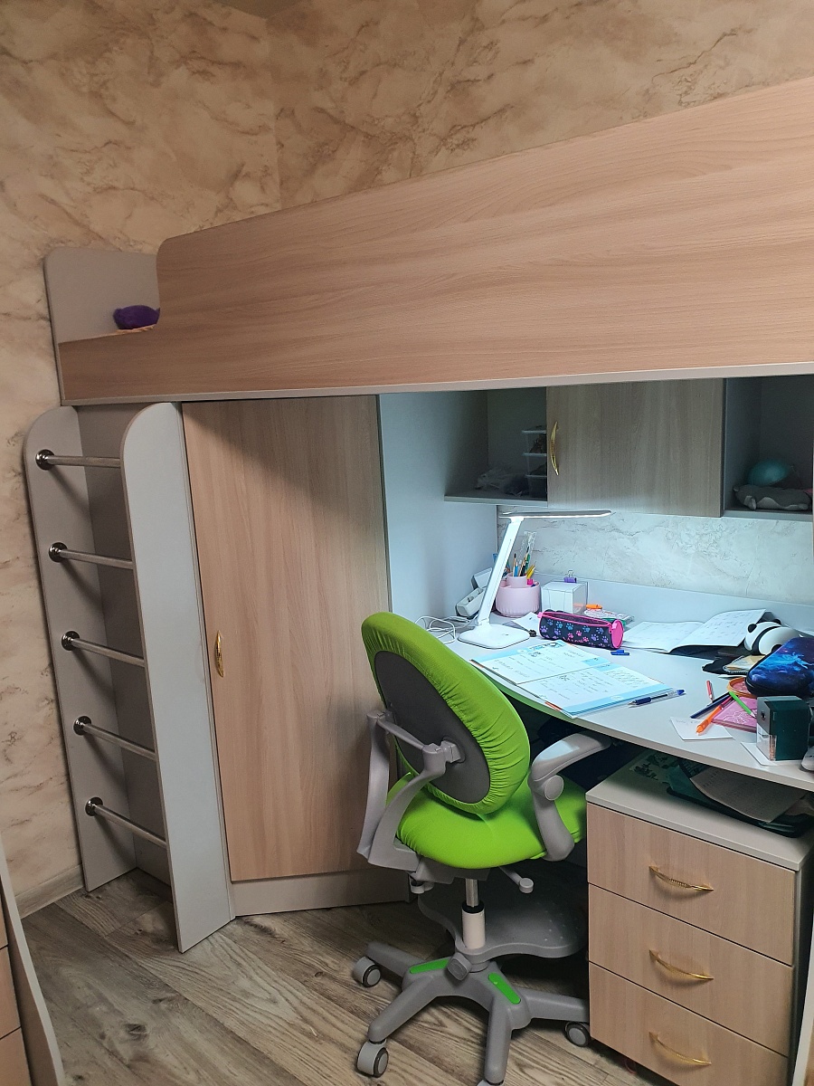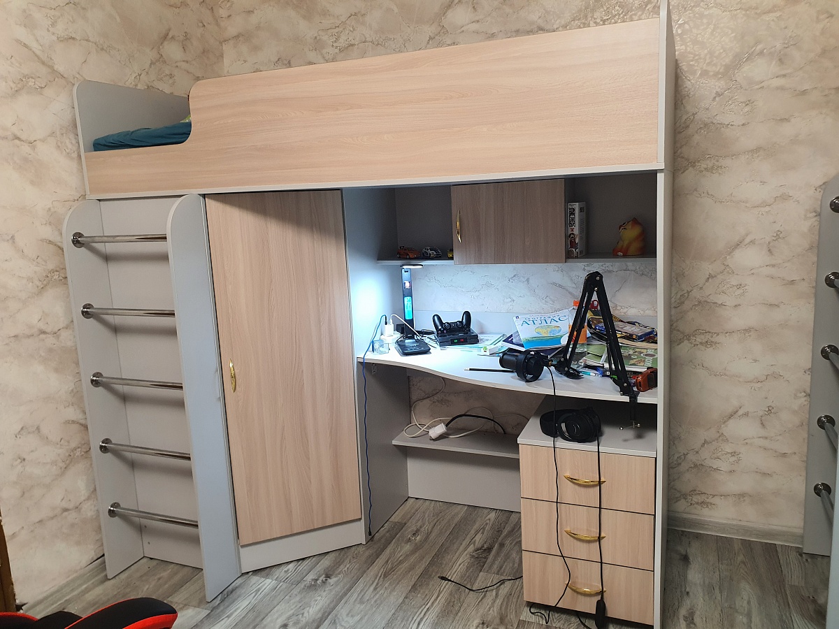 Заказ 1060774Заказывали две данные кровати для детей разного возраста 7 и 11 лет. Мне очень понравились, шикарное рабочее место, полочки, выкатная тумба, плюс полноценные шкаф для одежды с полками и вешалкой. Детям тоже очень понравились кровати, что немаловажно. Привезли всё в срок. Все детали в наличии. Единственное, сборщики с которыми сотрудничает бестмебель оставляют желать лучшего, если есть проверенная компания по сборке заказывайте их. В заказе было три позиции собирали с 10 утра до 23.00, при этом один из сборщиков в середине дня уехал по своим делам. Когда на следующий день стали протирать мебель и раскладывать вещи, в сборке обнаружились косяки. Позонили в фирму по сборке и к нам только через неделю прислали мастера, который исправил недочёты,  а мы не могли неделю пользоваться мебелью.