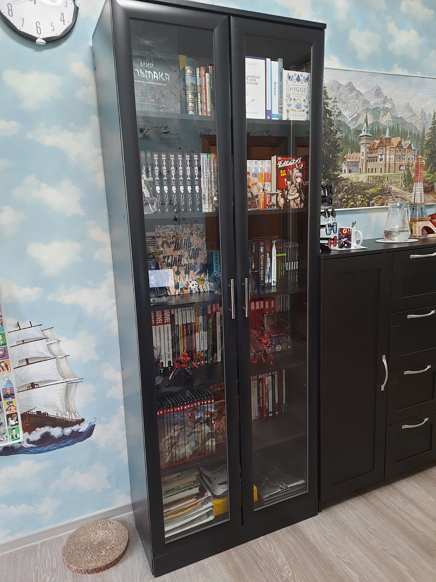 Заказ 00000803677, изделие Шкаф книжный 2 №1 BMS (800х2100х400)Шкаф мне понравился. Все детали сделаны аккуратно, засверловка в нужных местах. Две полки являются ребрами жесткости, так что шкаф стоит прочно, к тому же конструкция предусматривает возможность подвешивания на стену. Единственное что расстроило это отсутствие сзади снизу среза под плинтус, пришлось делать его самостоятельно, чтобы поставить шкаф вплотную к стене. Зато порадовало качество боковых стенок, после срезки угла лобзиком получился ровный край без сколов на поверхности. Все детали имеют наклейку с номером, указанным в инструкции по сборке, что заметно ее упрощает.Сделали и доставили очень быстро, особенно в сравнении с другой мебелью из разных магазинов. К примеру комод заказывала из другого магазина и его готовности я ждала месяц, тогда как шкаф приехал через неделю после оформления заказа.