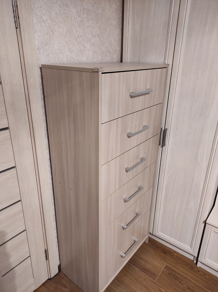 Давно хотел купить вместительный комод,но большинство комодов не подходили мне по размерам,либо расцветка не подходила к интерьеру.И тут,вновь обратившись к поиску,зашёл на сайт bestmebelshop.by и увидел подходящее изделие,к тому же все нужные размеры,цвет,материал изготовления, комплектацию можно выбирать самому,что оказалось весьма кстати.Составил мой будущий комод прямо на сайте и отправил запрос.Вскоре перезвонил оператор и уточнил некоторые детали.Время на изготовление и доставку определили и уложились в это время в срок.Доставка прошла безупречно,изделие в трёх упаковках было доставлено без повреждений.Далее предстояла сборка.Распаковав все упаковки,испугался множества мелких деталей,но благодаря хорошо исполненному чертежу и безупречному изготовлению самих деталей и точной разметке на них,сборка прошла без особых затруднений.Фурнитуры хватило с запасом.Не было такого,чтобы чего-то не хватило.Комод оказался большим,высоким и вместительным,как я и хотел.Качеством всех изготовленных деталей и собранным изделием остался доволен.Большое спасибо всей команде!