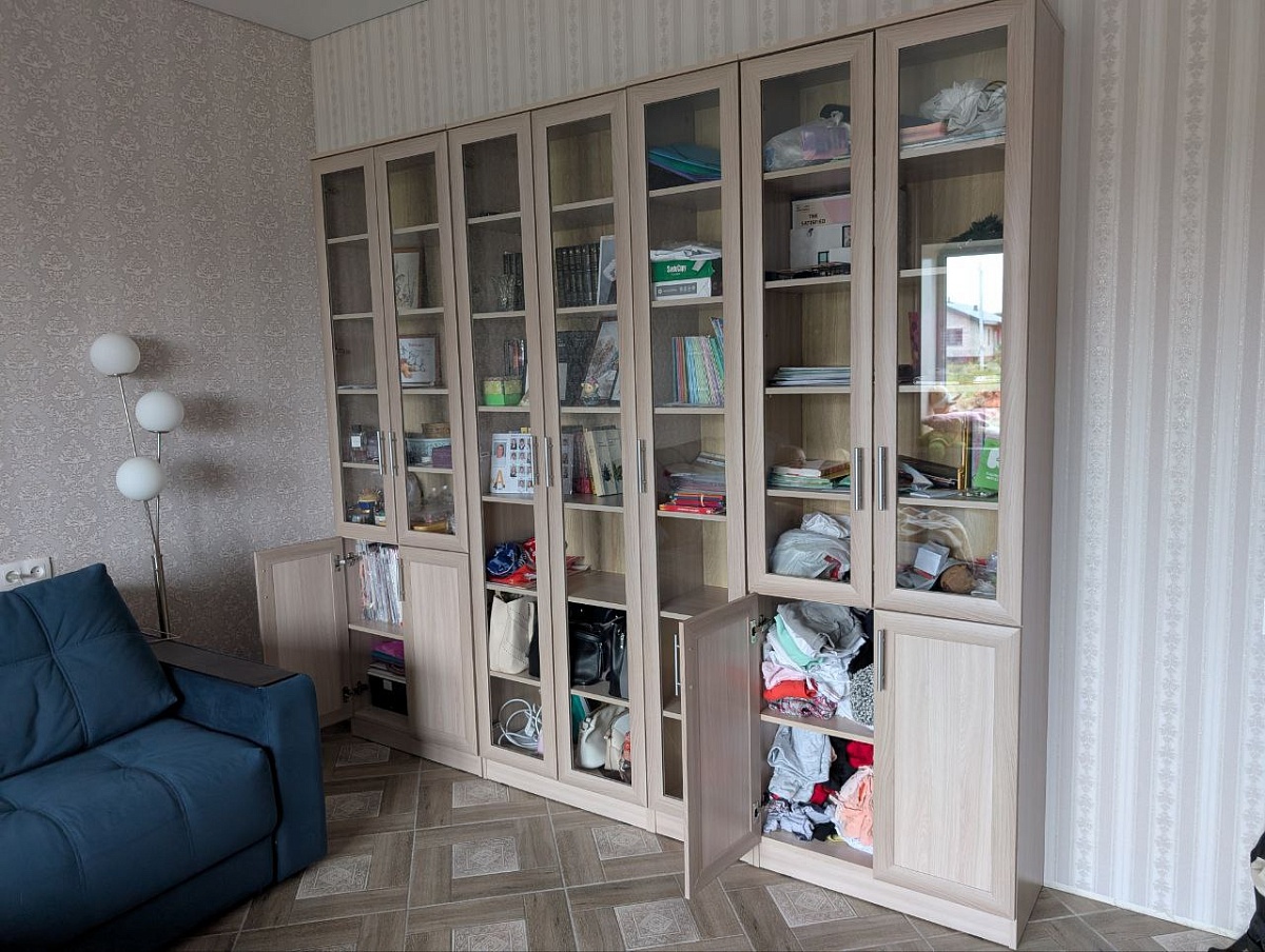 Искали шкаф для книг. В БэстМебель нашли шкаф который устраивал по цене, комплектности и внешнему виду. При заказе на сайте можно выбрать размер, фурнитуру, цвет. Выбрали петли с доводчиками, двери не хлопают. Шкаф состоит из 4-х отдельных шкафов, что удобно при сборке. Качество производства устроило, при сборке проблем не возникло. Всем доволен. Заказ №1153620