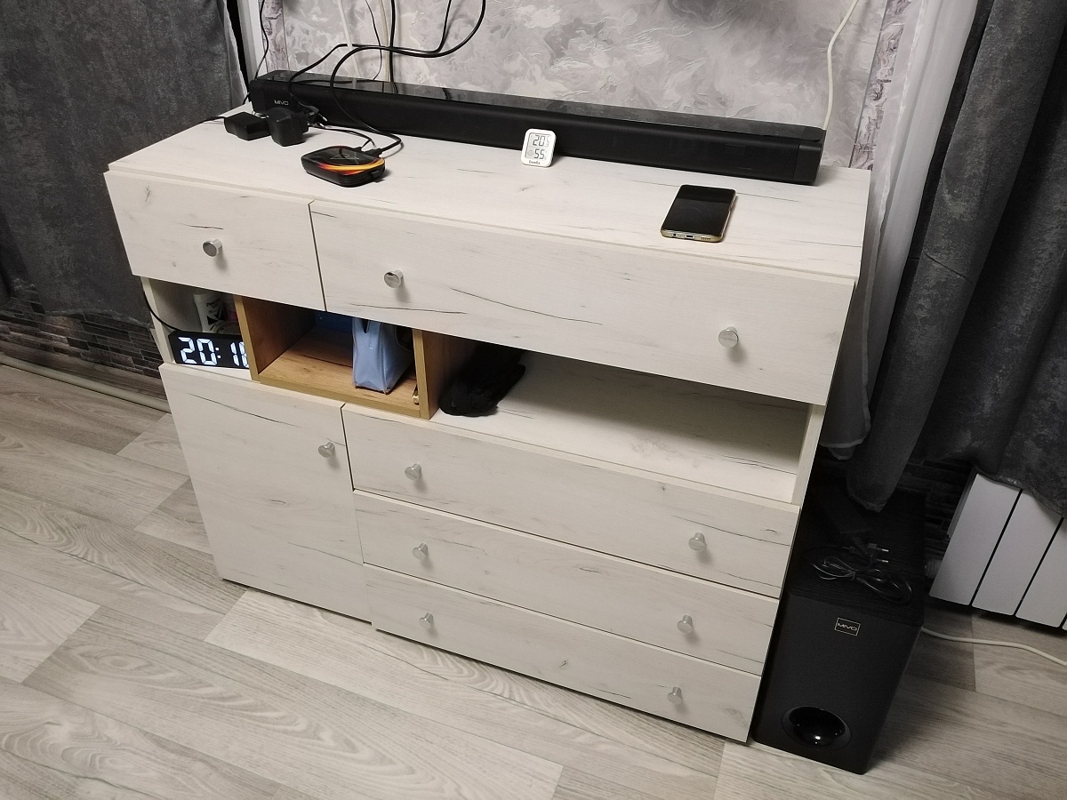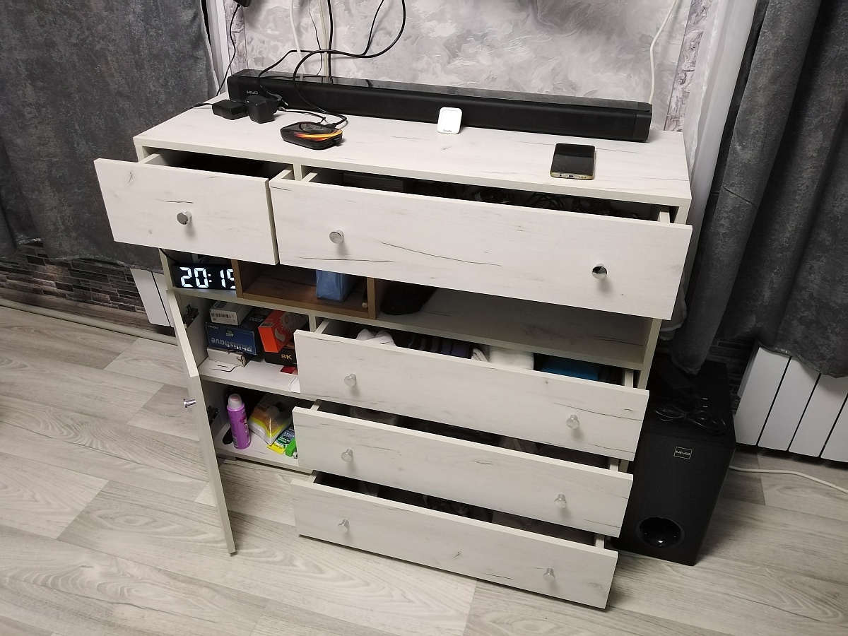 Хочу оставить отзыв о комоде/тумбе.Плюсы:1.можно сделать на заказ под свои размеры вплоть до миллиметра2. Можно поменять даже конструкцию , мне например нужна была открытая часть не посредине, а слева 3. Ящики с прорезью вместо ручек за смешные деньги 4. Быстрый срок исполнения по нынешним меркам 5. Все делали пронумерованы Минусы :1. Качества распила на некоторых деталях оставляет желать лучшего 2. Схема была приложена символическая . Видно рассчитано на то , что люди обратятся к сборщикам 3. Большая цена доплаты за цвета и за толстую кромку .Моя оценка -4 из 5.